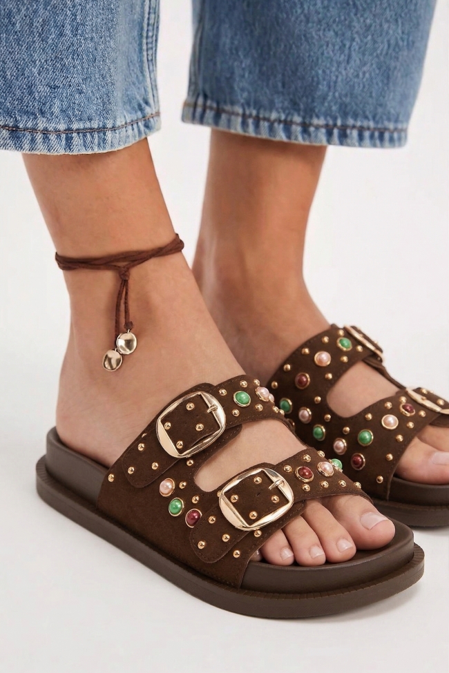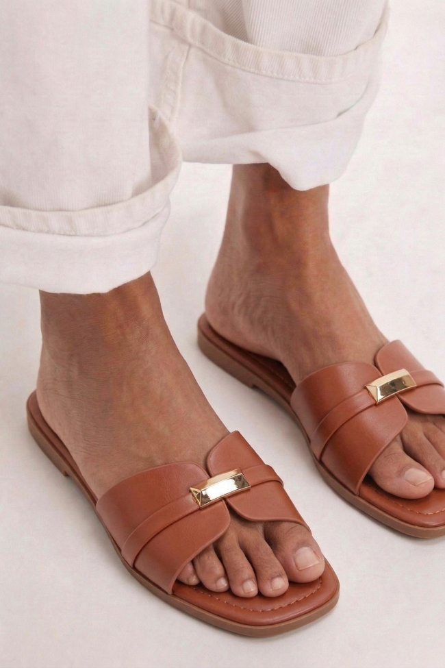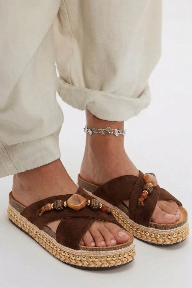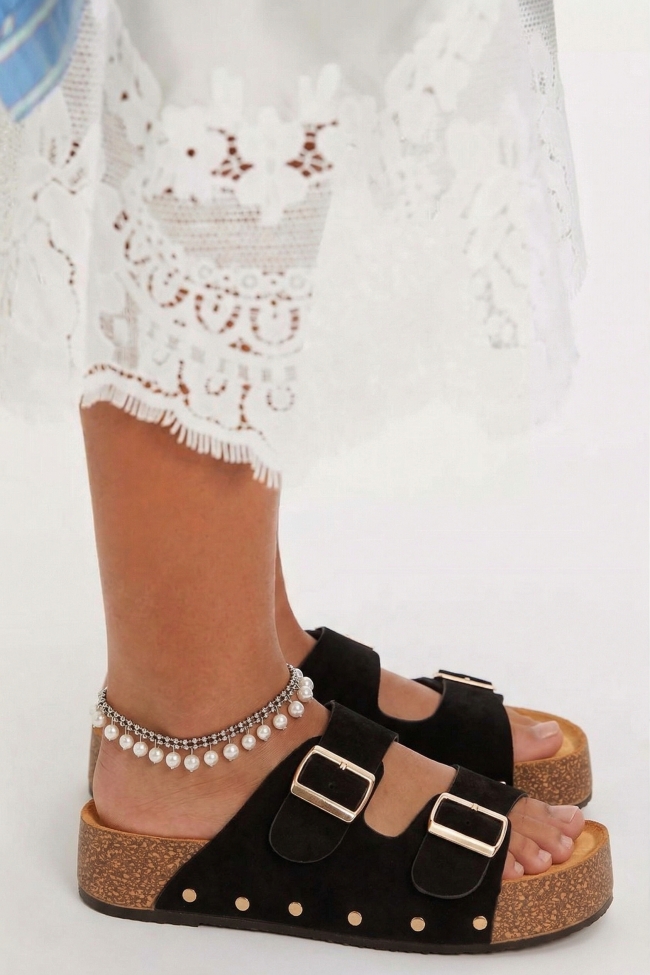 Sandale Flatform cu Barete Înncrucișate & Detaliu Metalic