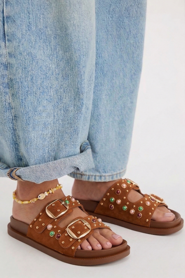 Pantofi cu vârf ascuțit cu pietre decorative și strasuri