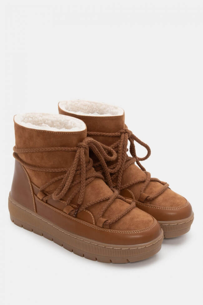 Боти с дебела подметка с вътрешна подплата от пух и декоративни ресни