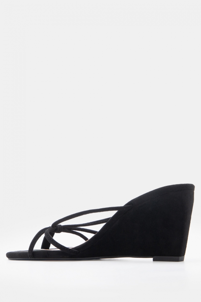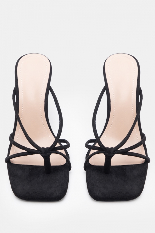 - Ανοιχτά mules με στριφτό λουράκι: Έχουν κάτι κομψό και παιχνιδιάρικο μαζί. Το twisted λουράκι τραβάει το βλέμμα και προσθέτει κίνηση. Ειδικά αν το συνδυάσεις με total black look, κάνει όλη τη διαφορά.
