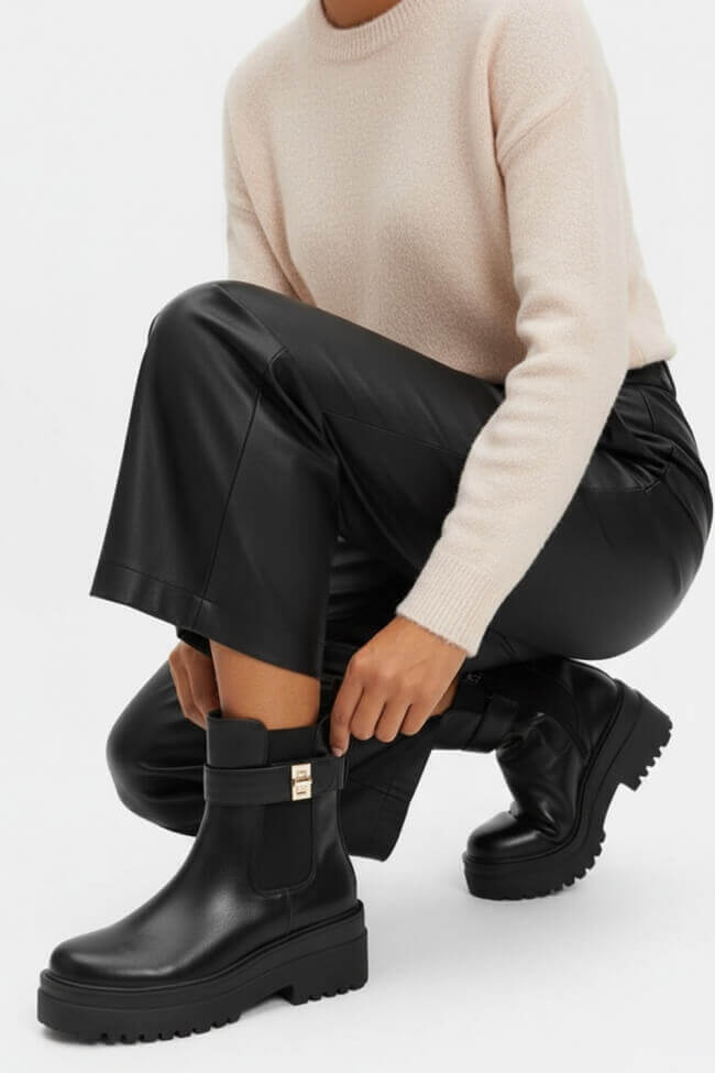 - Casual Cool: Комбинирай ги двойни боти с любимите си дънки и oversized суичър или пуловер, за да създадеш перфектния streetwear вид. Ако искаш нещо по-женствено, пробвай сако и basic топ – толкова семпло, но толкова стилно!