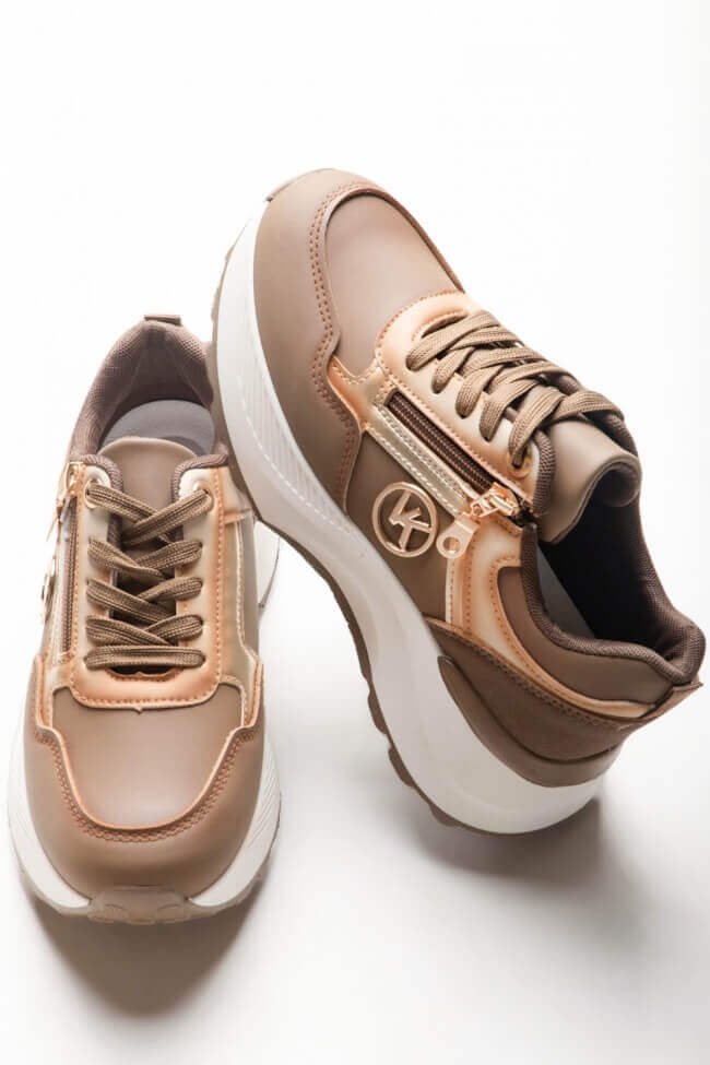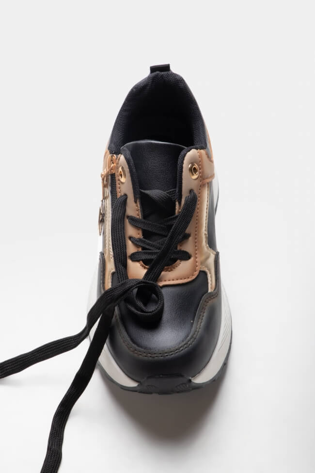 Sneakers cu talpă dublă cu strasuri și fermoar