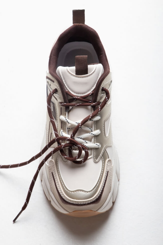 Sneakers în combinație de culori cu șireturi duble
