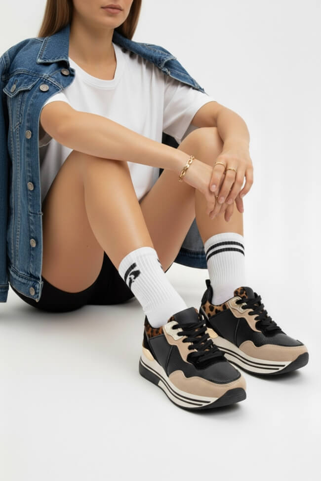 Sneakers în Combinație de Culori & Materiale