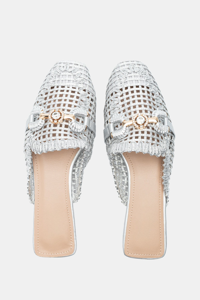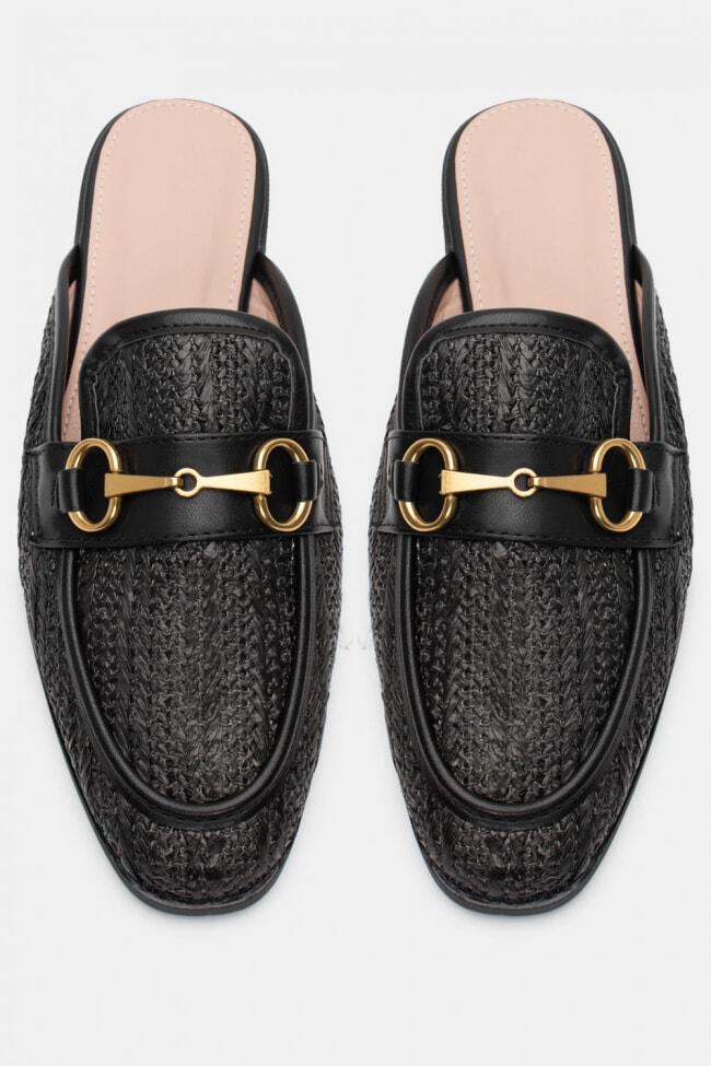 Mules με Ψάθα & Διακοσμητική Αγκράφα απο Strass