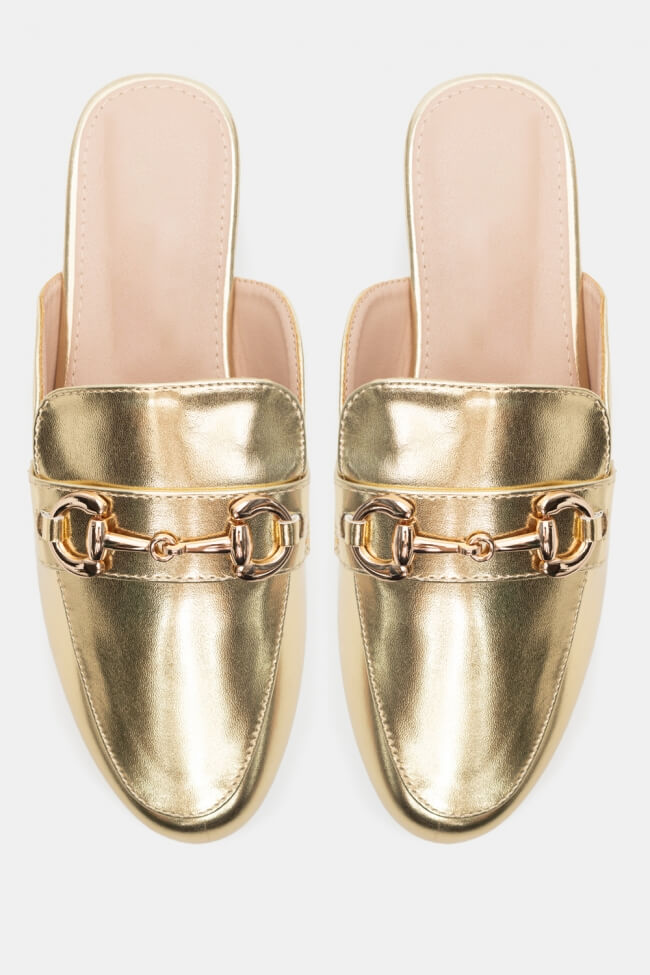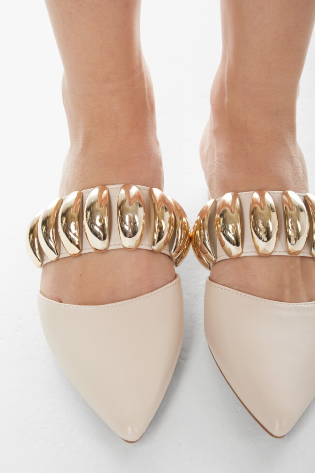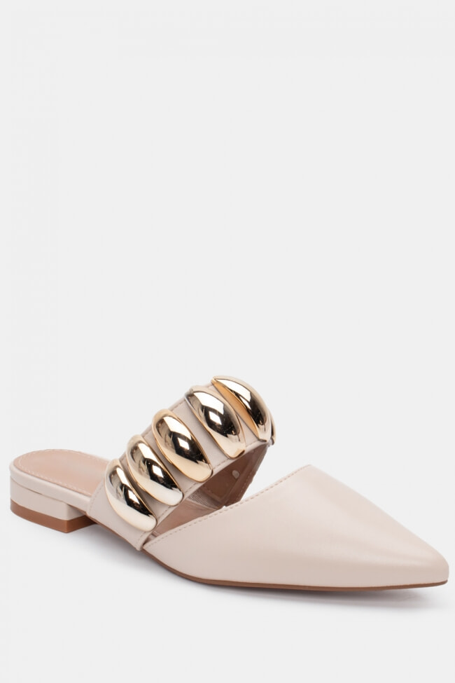 Mules Μυτερά με Χρυσή Λεπτομέρεια & Λάστιχο