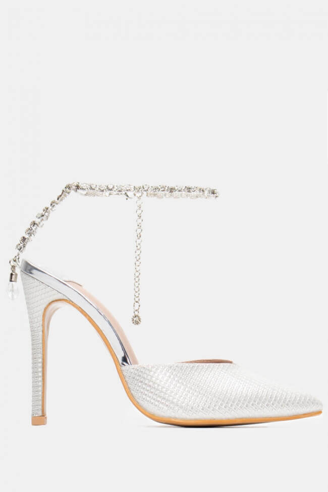 Plus, η μυτερή γραμμή τους επιμηκύνει το πόδι, δημιουργώντας μια πιο αριστοκρατική εμφάνιση, ενώ η μπαρέτα κρατάει το πόδι σταθερό όλη μέρα. Βρες τις μυτερές γόβες με στρας και διακοσμητική αλυσίδα από πέτρες και βάλ’ τες με ένα cocktail dress - περίμενε τα πιο «wow» βλέμματα.