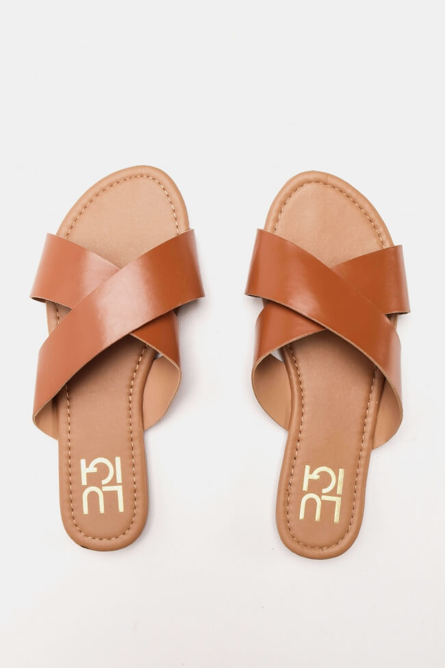 LUIGI DESIGN - Sandale Plate Cu Barete Încrucișate