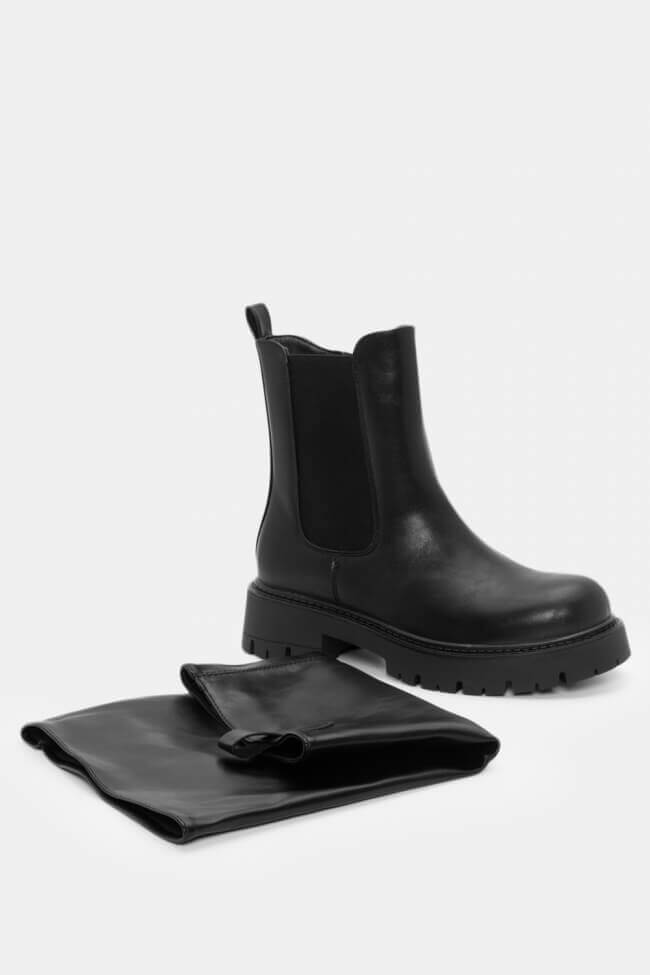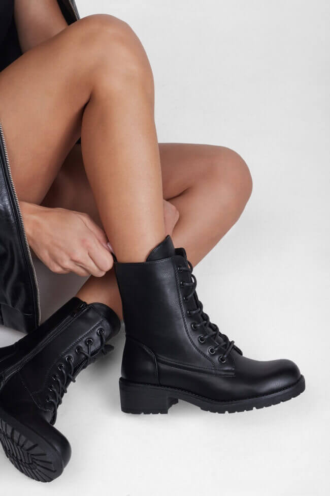 - Αν αγαπάς τα minimal κομμάτια, μπορείς να επιλέξεις πιο κλασικά σχέδια όπως biker boots σε μονόχρωμη παλέτα, που ταιριάζουν με τα πάντα.