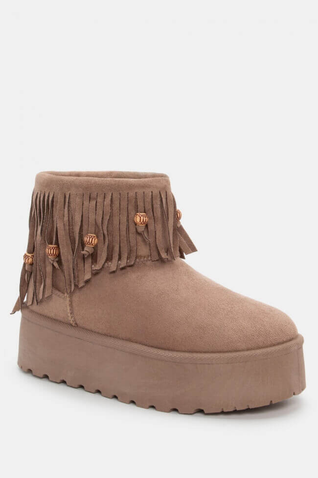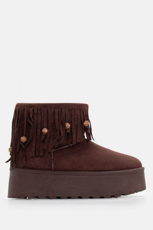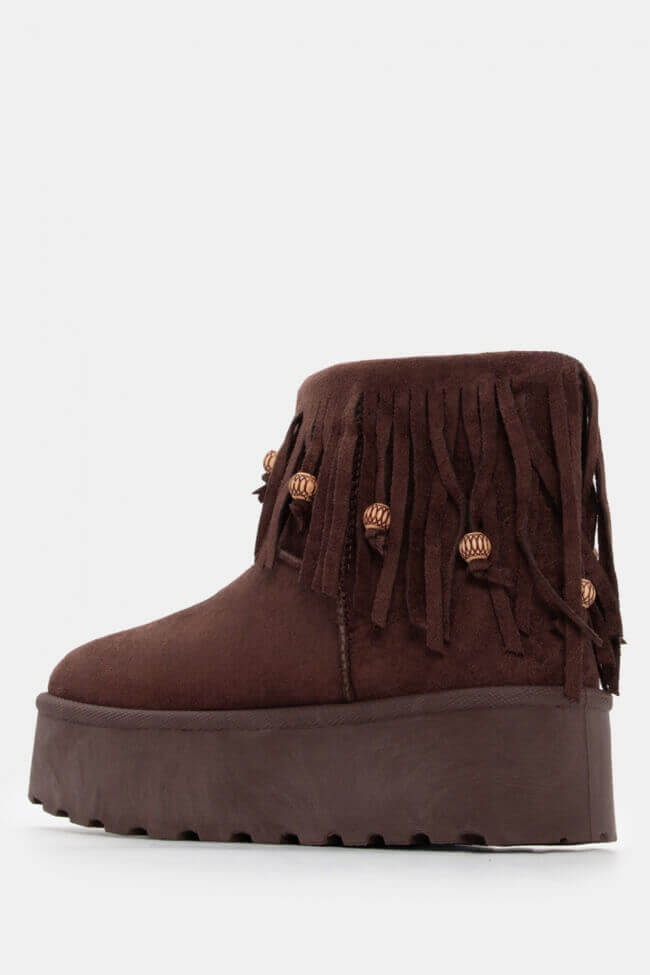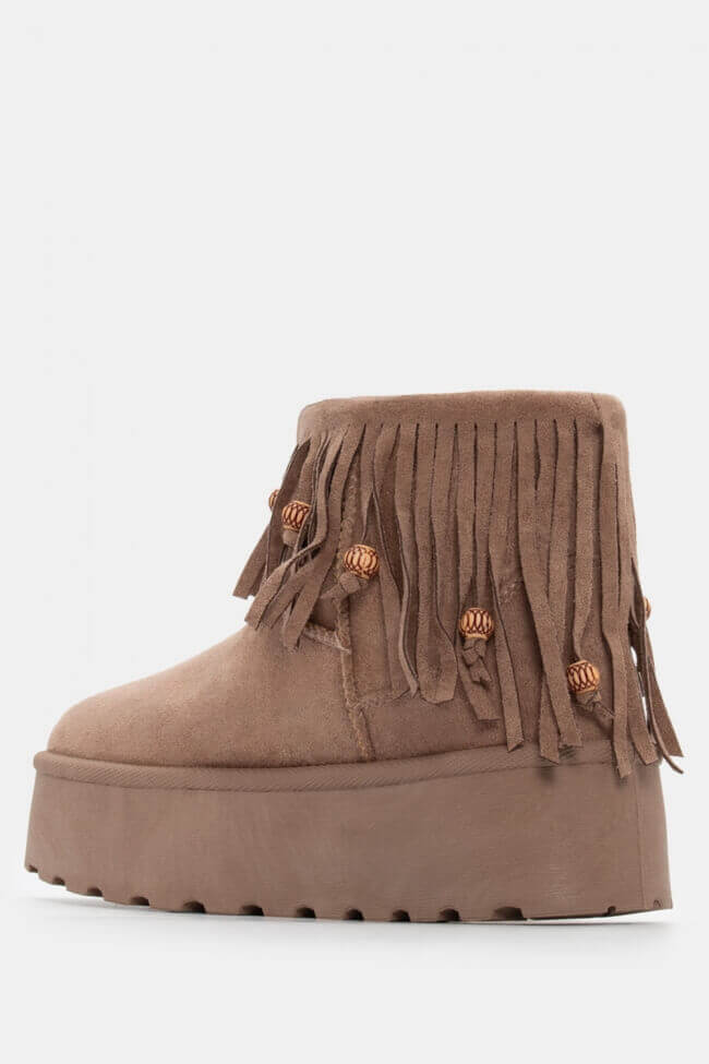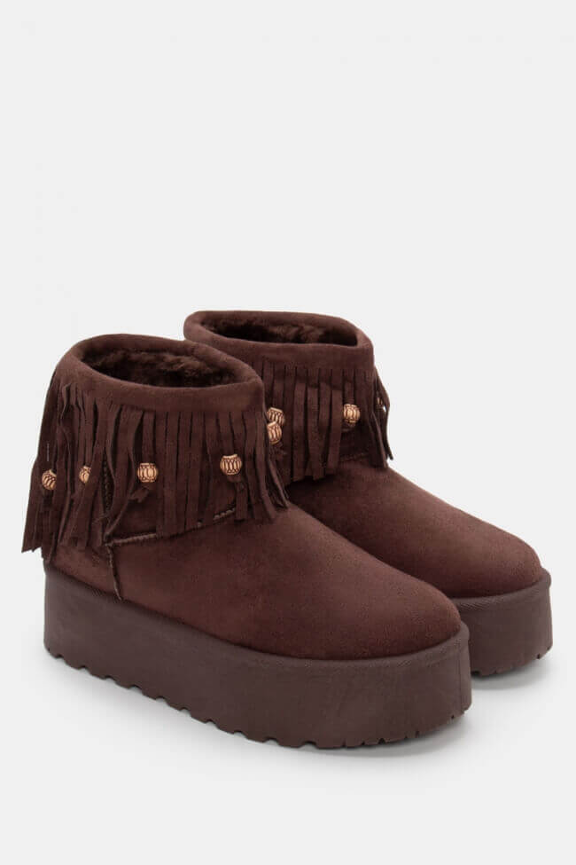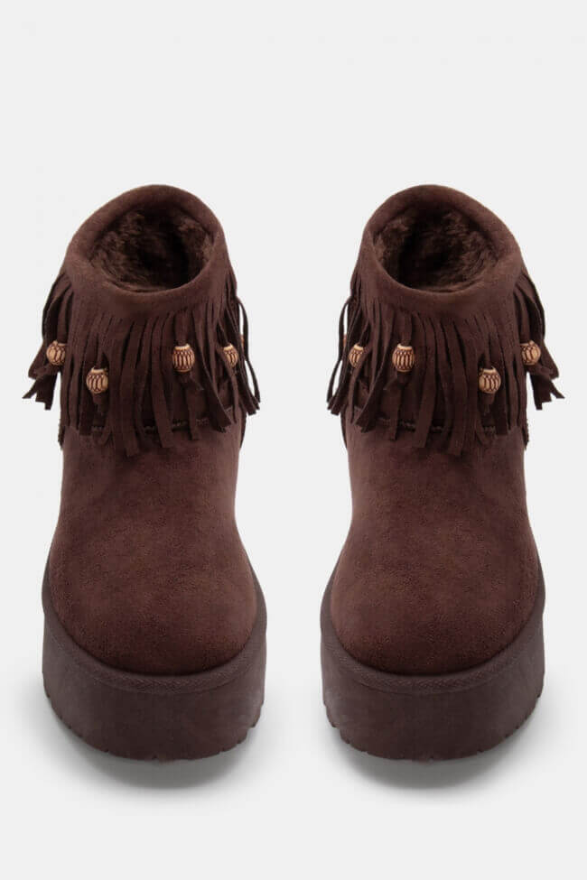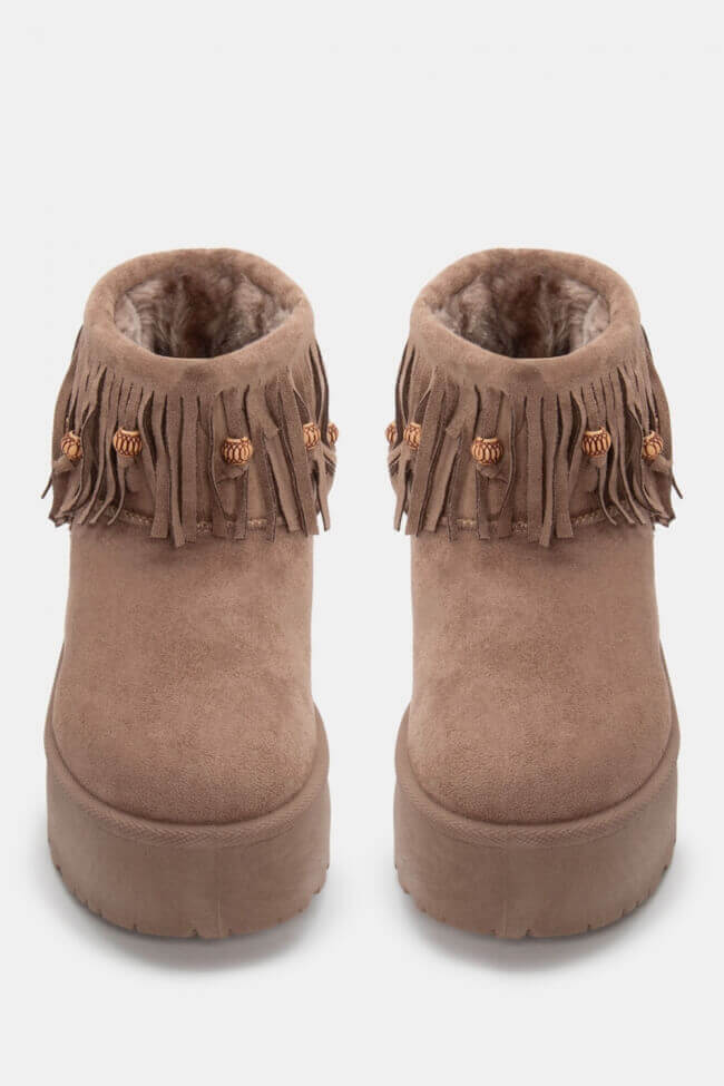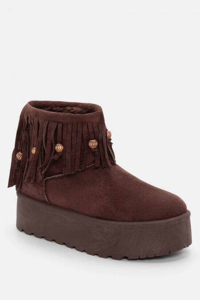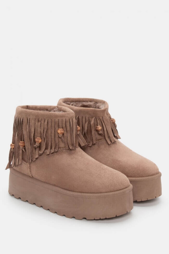 Μποτάκια Δίσολα με Εσωτερική Επένδυση Γούνας & Διακοσμητικά Κρόσσια