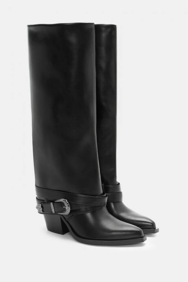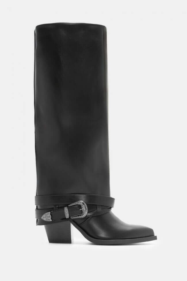 Μπότες Cowboy με Εφέ Αναδιπλούμενης με Διπλά Λουράκια