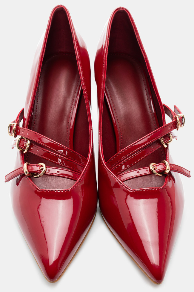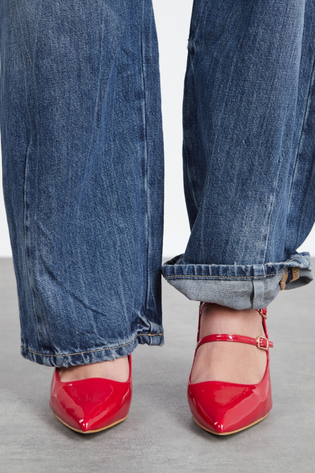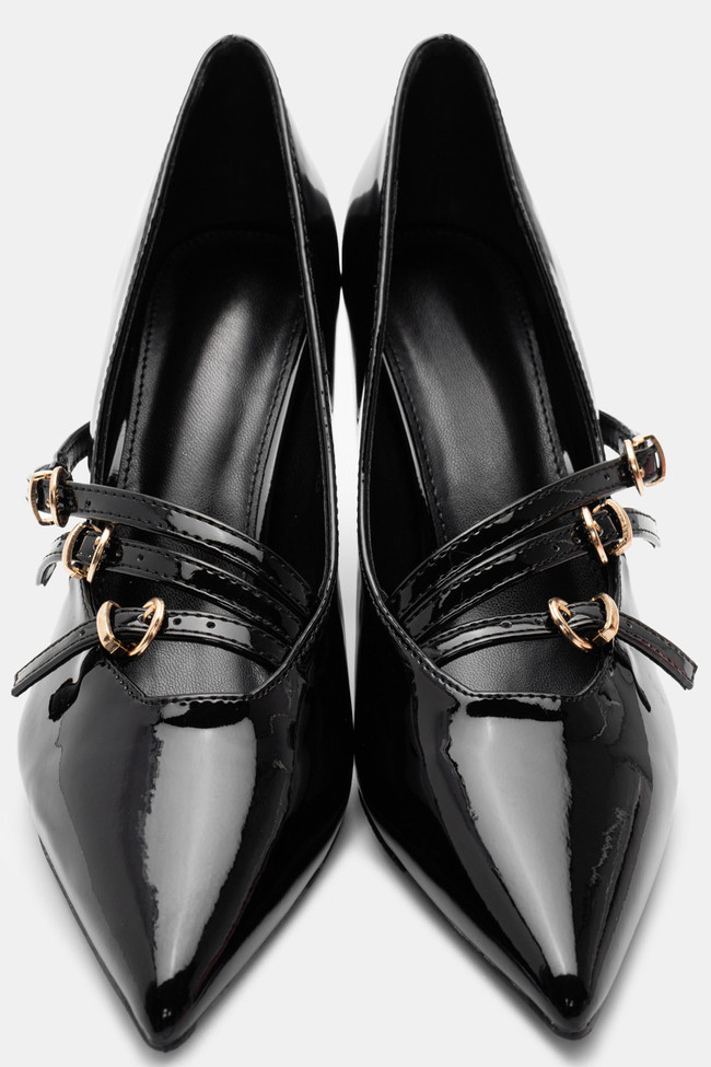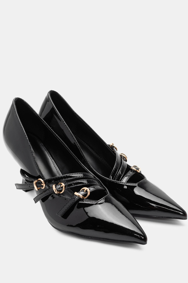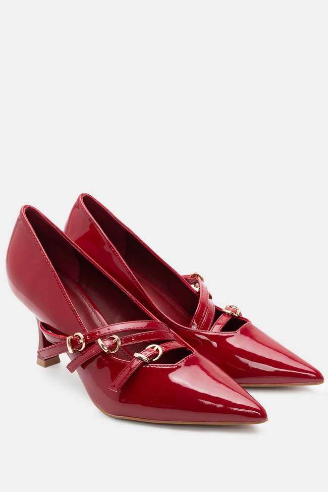 Γοβάκια Μυτερά Λουστρίνι με Χιαστί Λουράκια