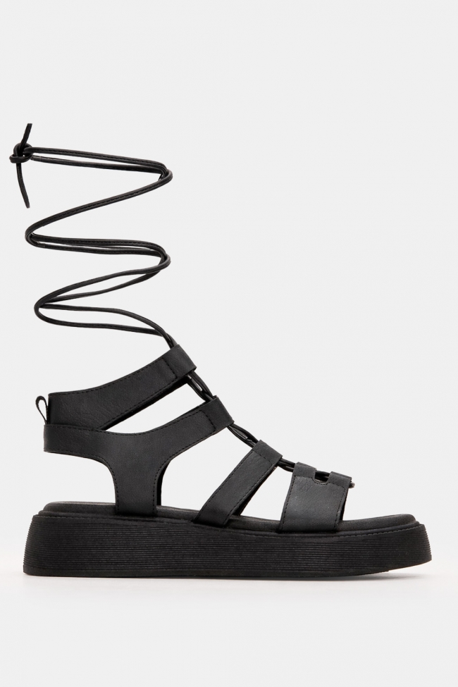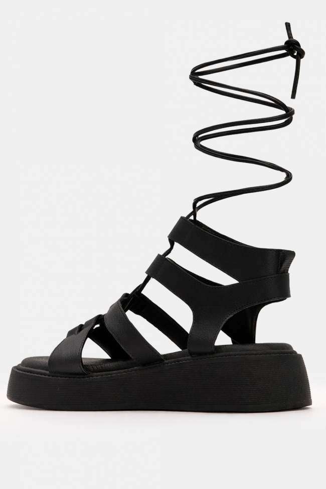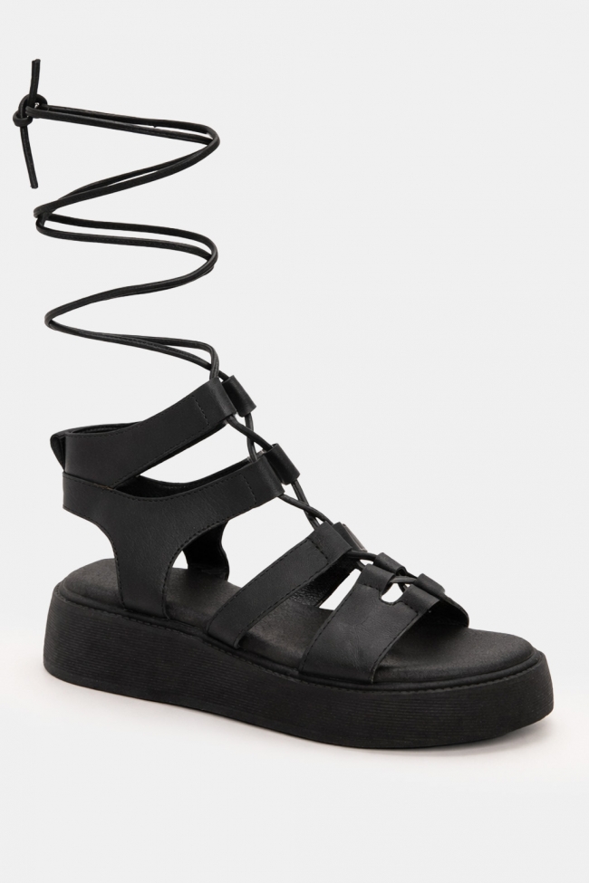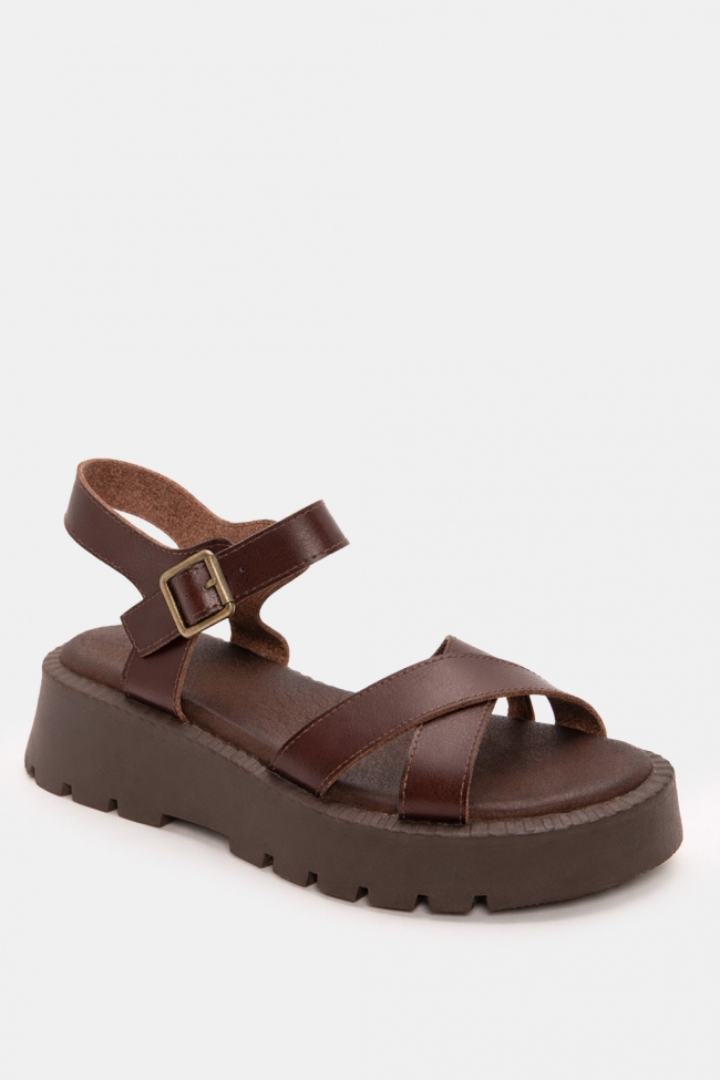 Flatform Sandals with Crossed Straps & Ankle Strap