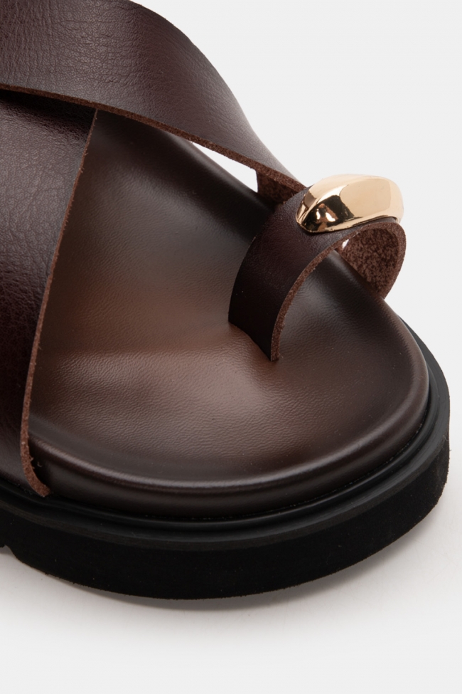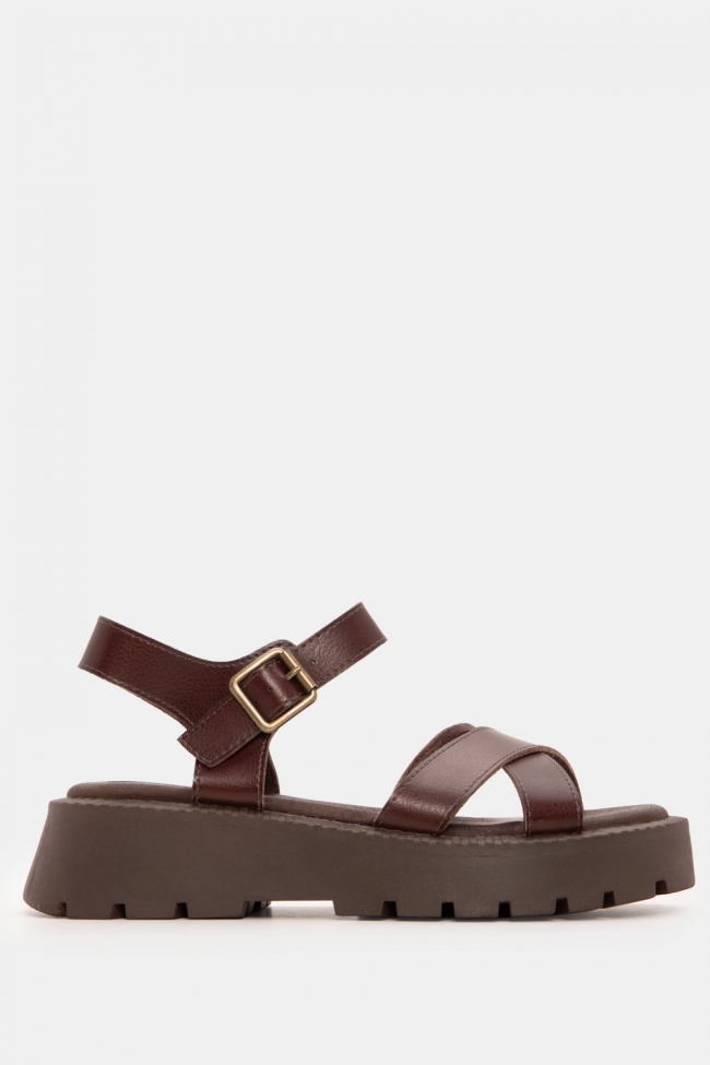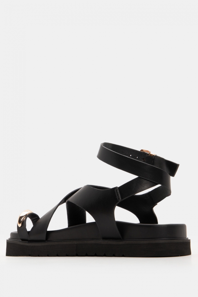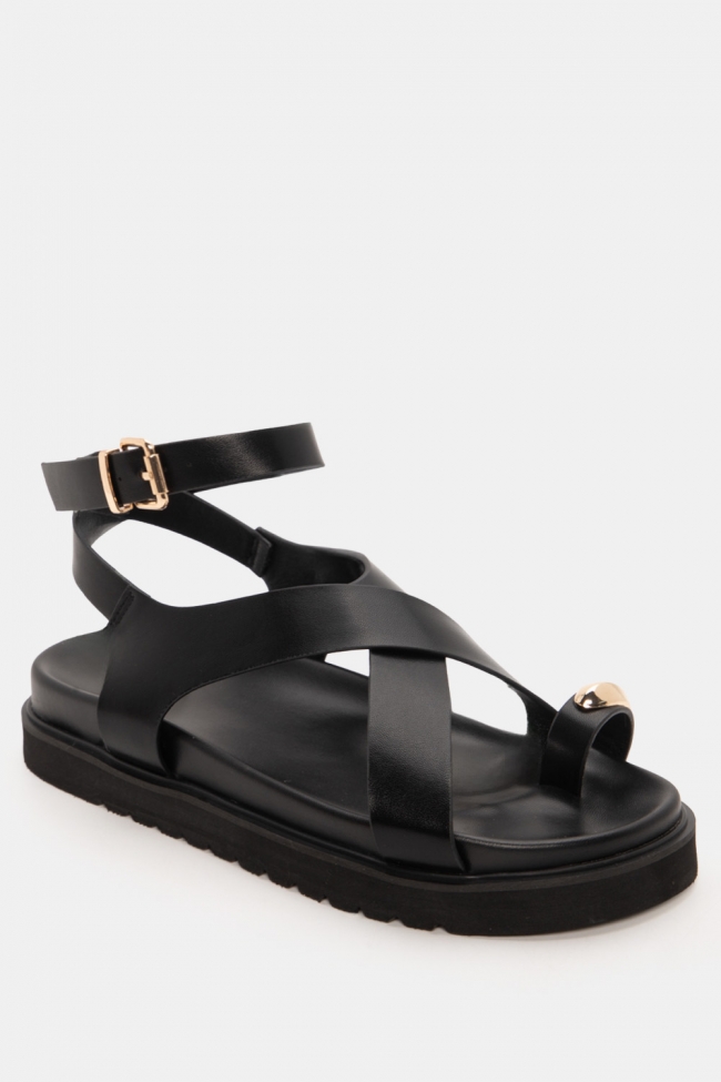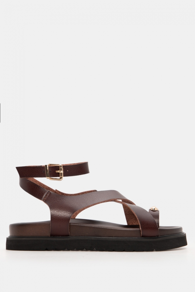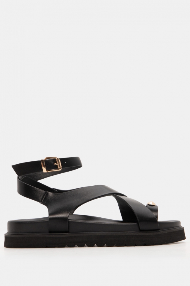 Flatform Sandals with Crossed Straps & Metallic Detail