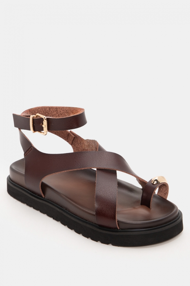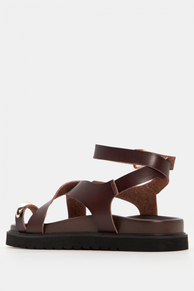 Flatform Sandals with Multiple Straps & Decorative Ring