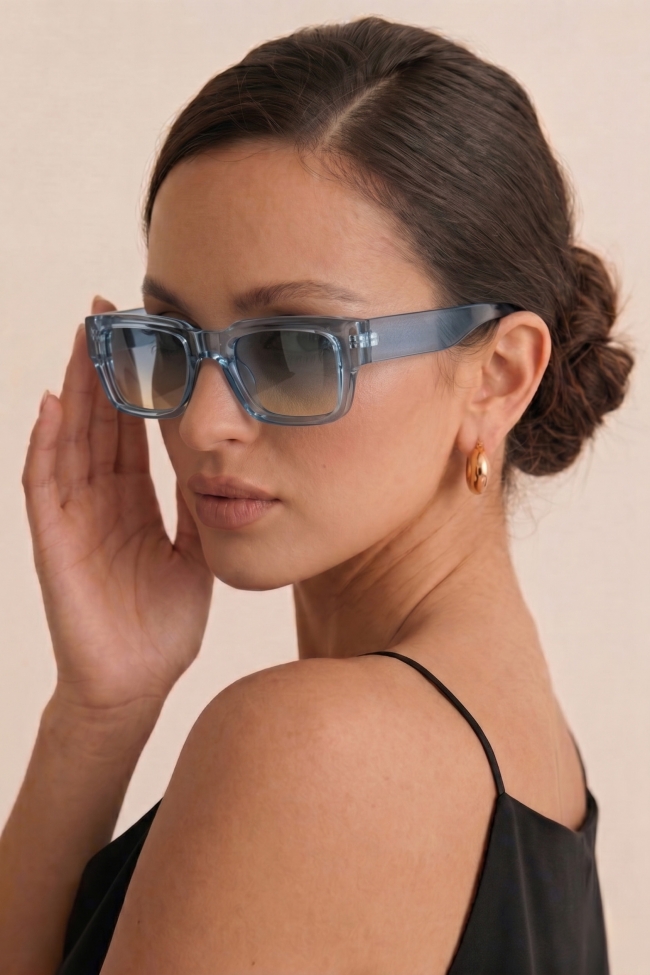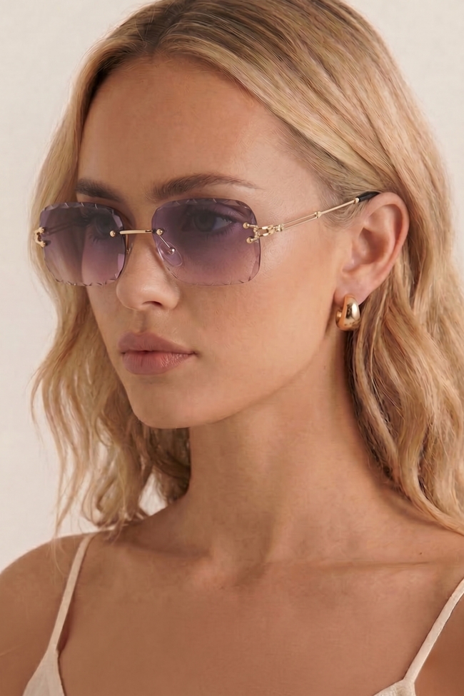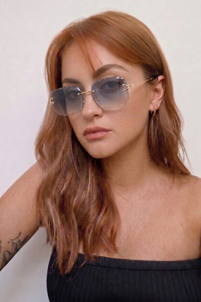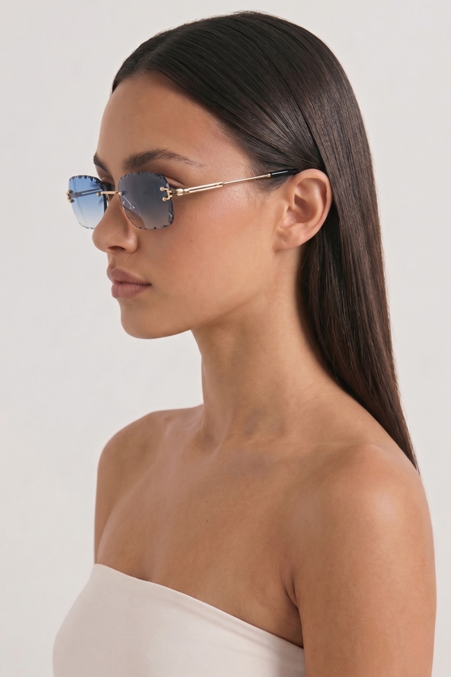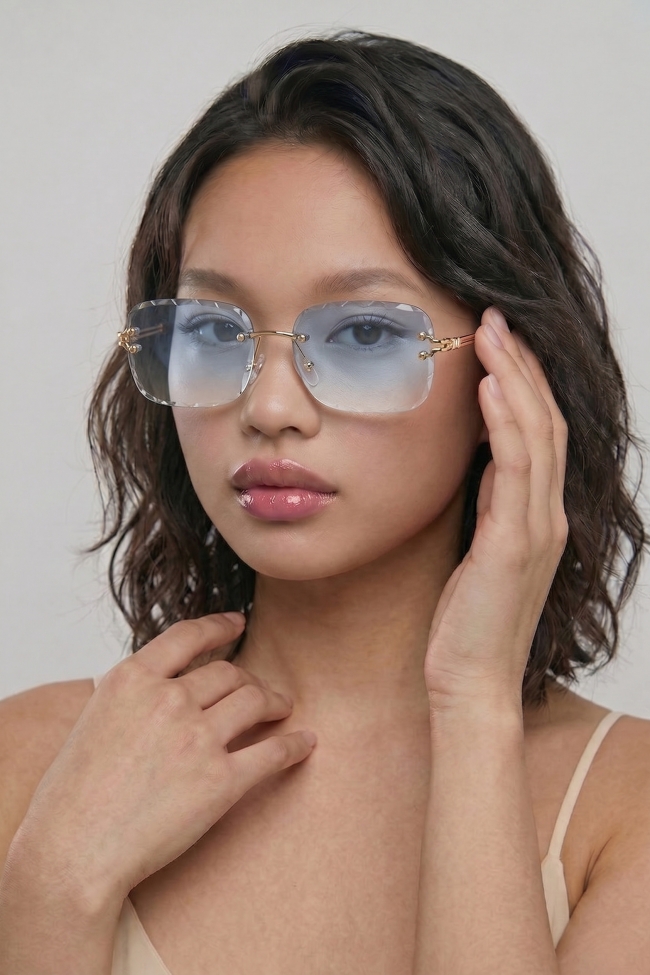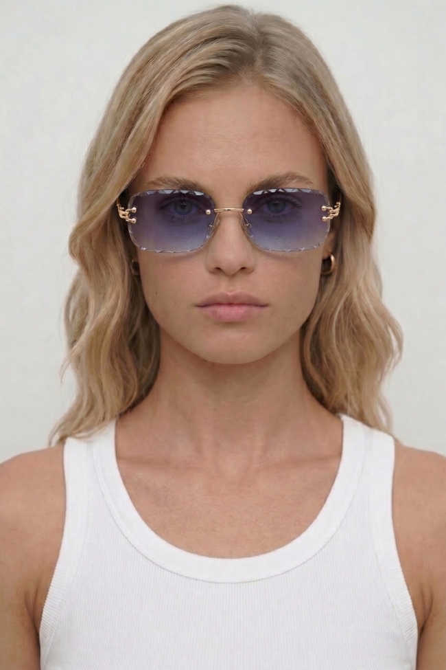 Rectangular retro crystal gradient sunglasses