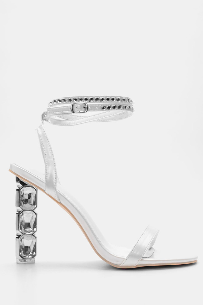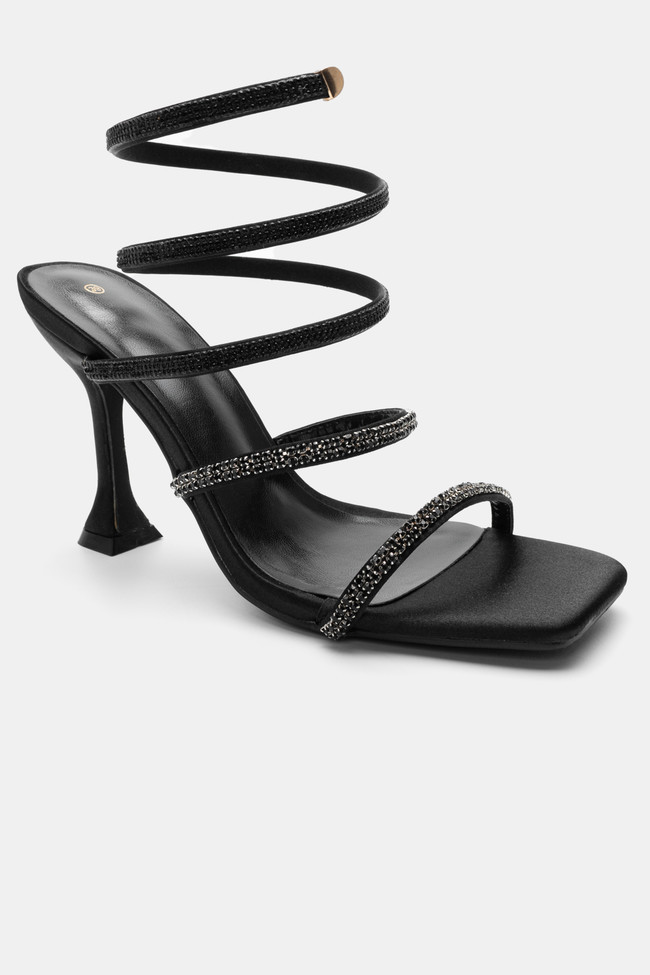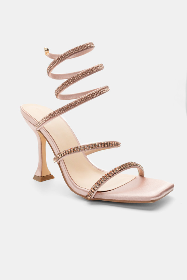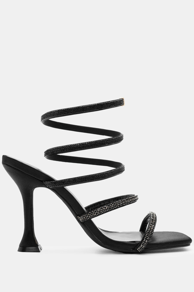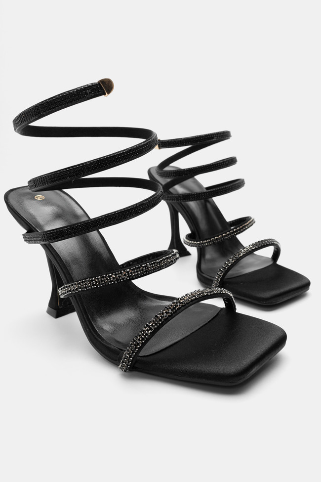 Sandali con Tacco Particolare & Cinturino Rotante in Strass