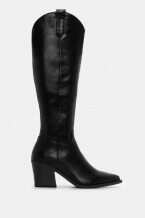 Уестърн ботуш с остър връх, бродирани детайли, нисък широк ток, висока яка, страничен шев.