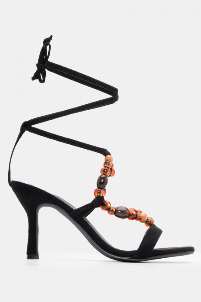 Sandale Lace Up cu Mărgele Decorative