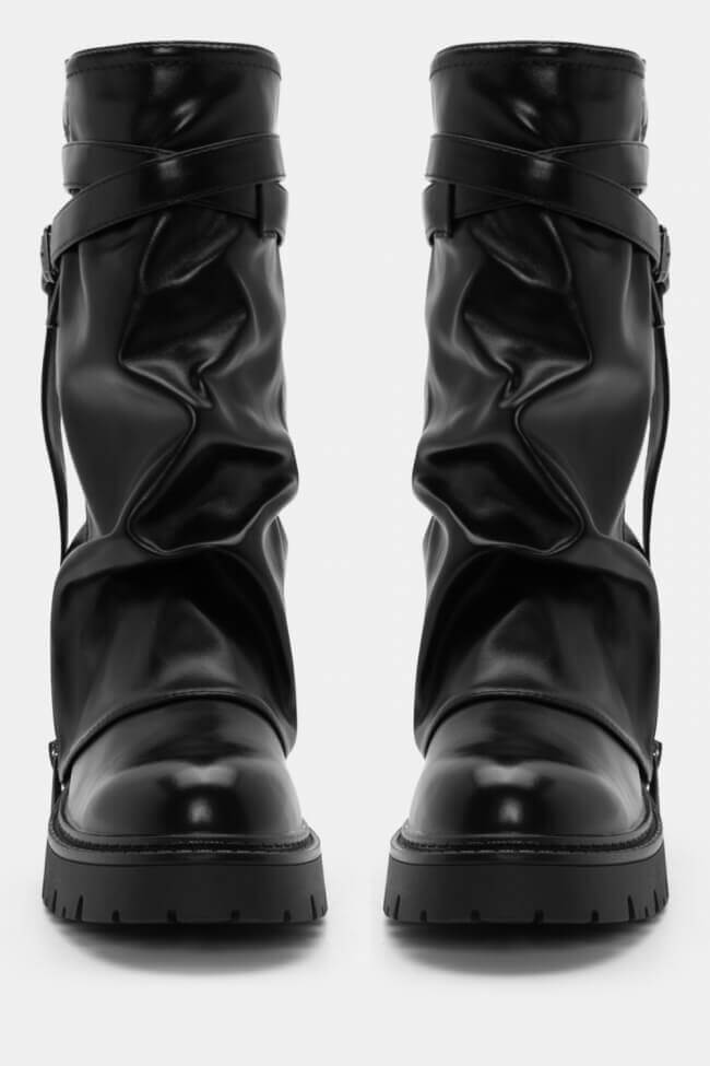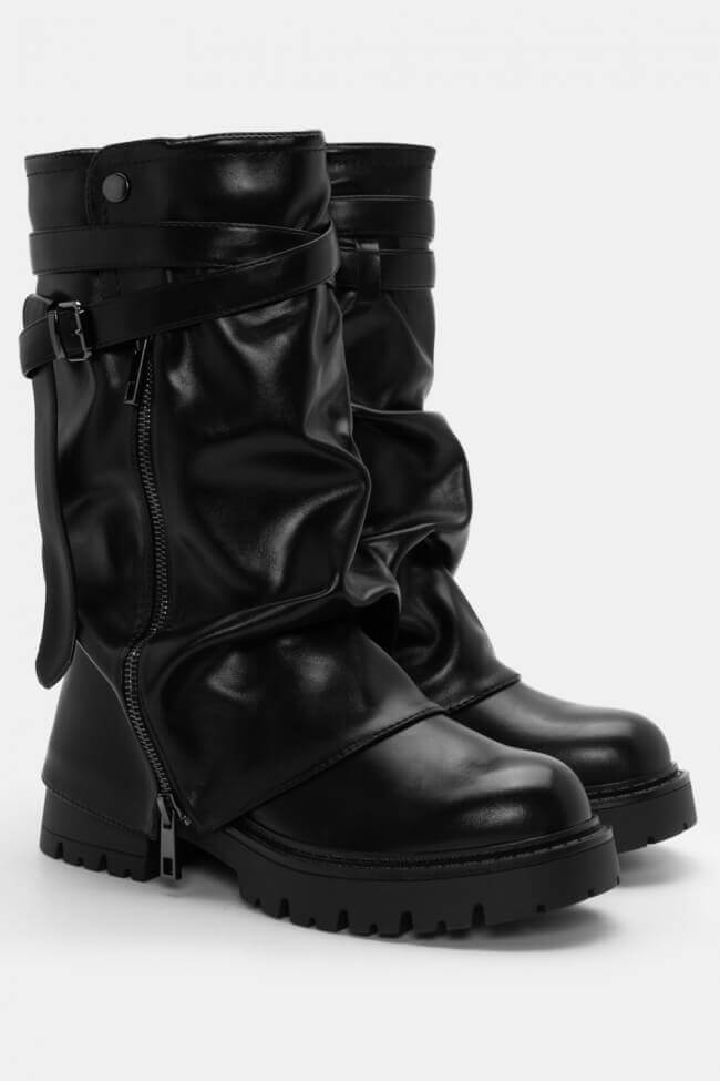 Ботуши със сгъваем ефект на корпуса и декоративен ремък