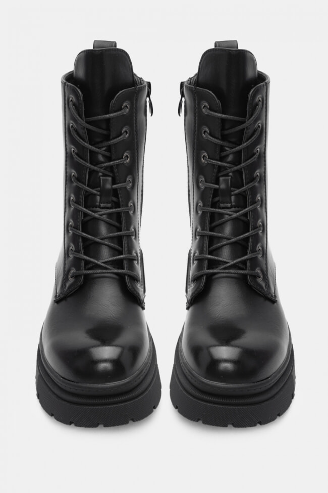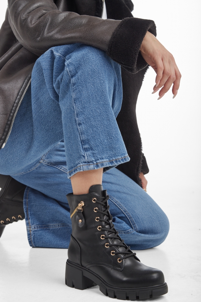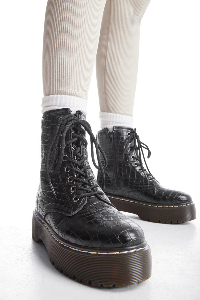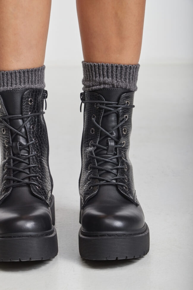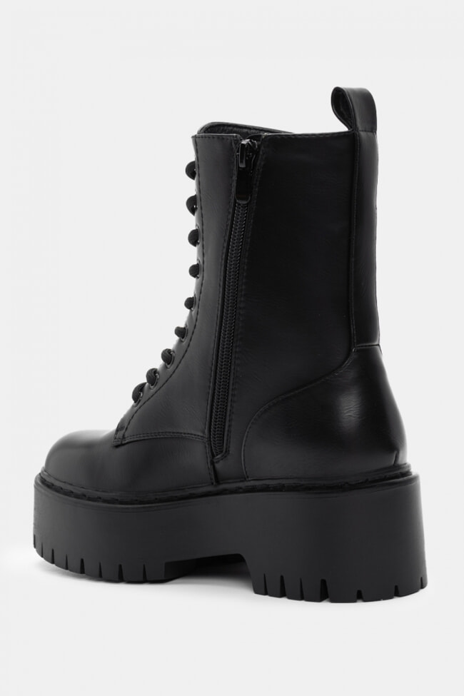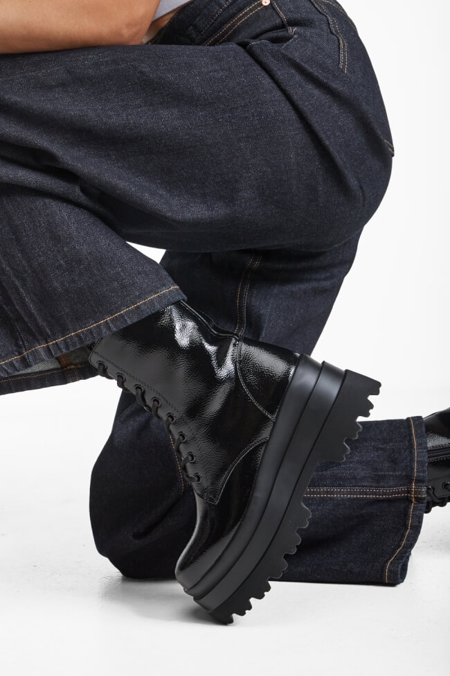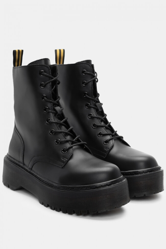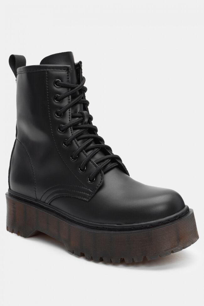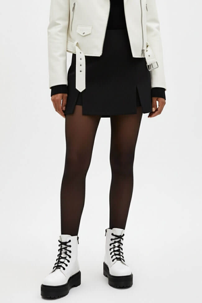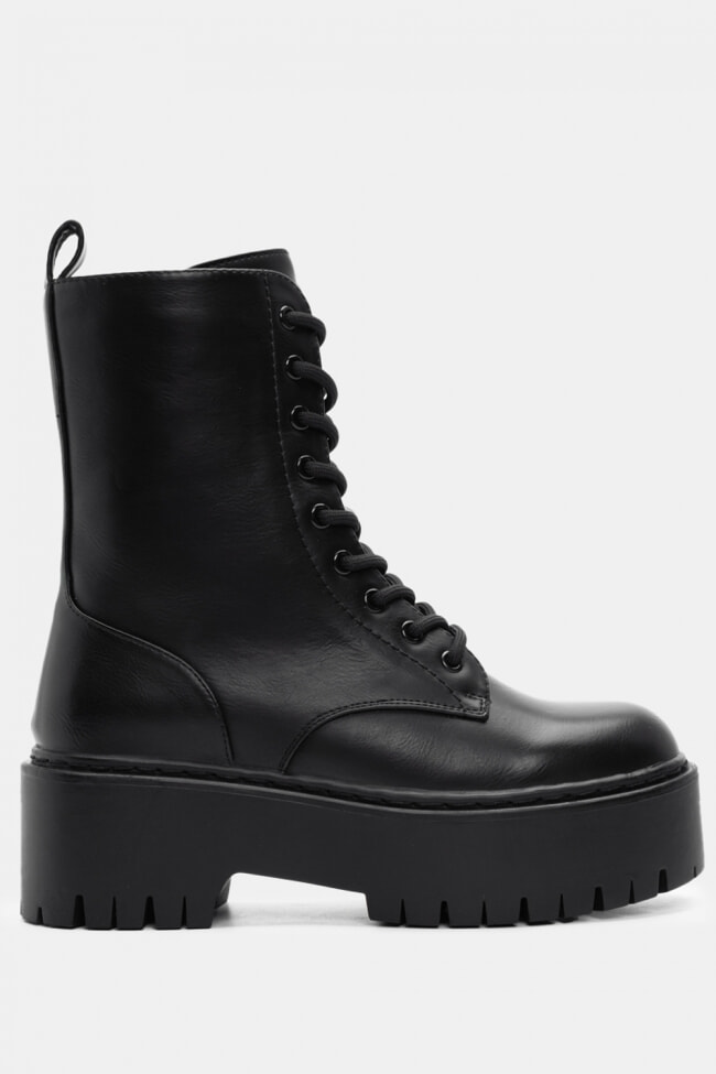 Gli stivaletti con doppia suola con suola carrarmato si accompagnano perfettamente alla culture rock e per questo sono perfetti con pezzi in pelle come gonne, leggings e giacche. Una classica giacca di pelle nera combinata con un jeans strappato è la combinazione perfetta per un look dinamico.