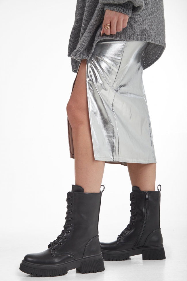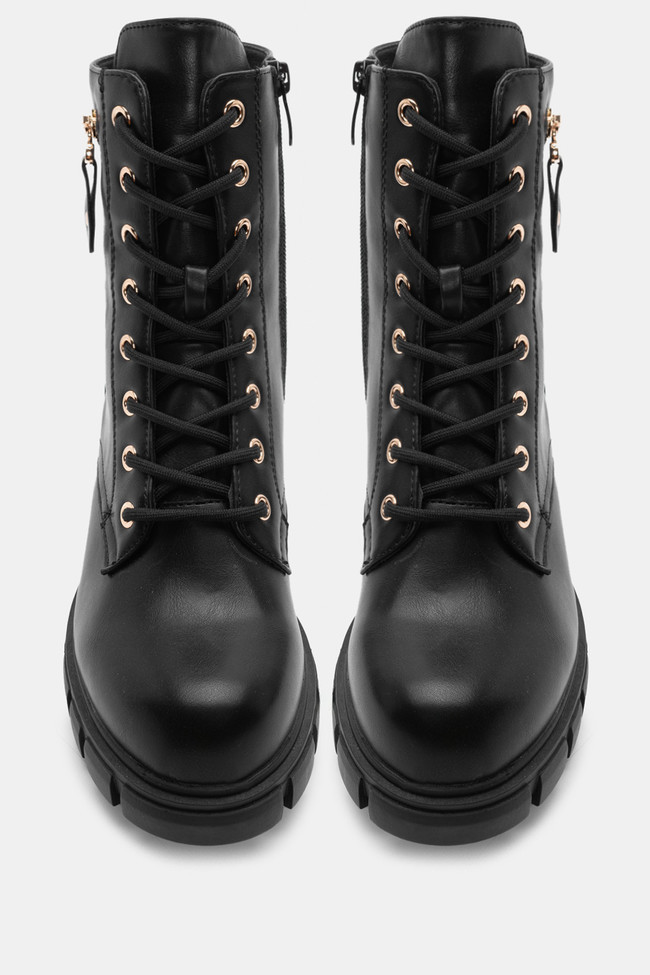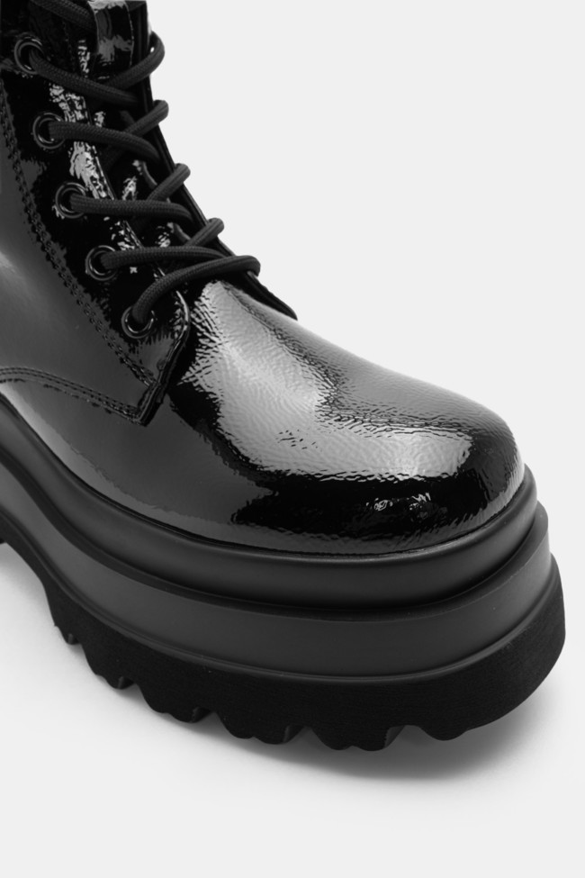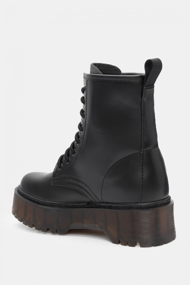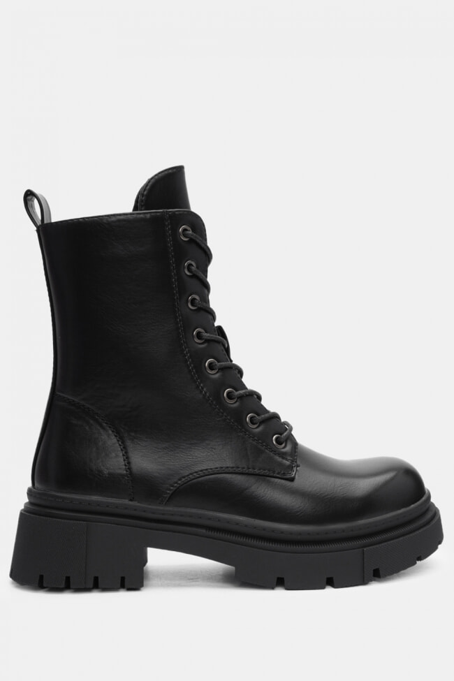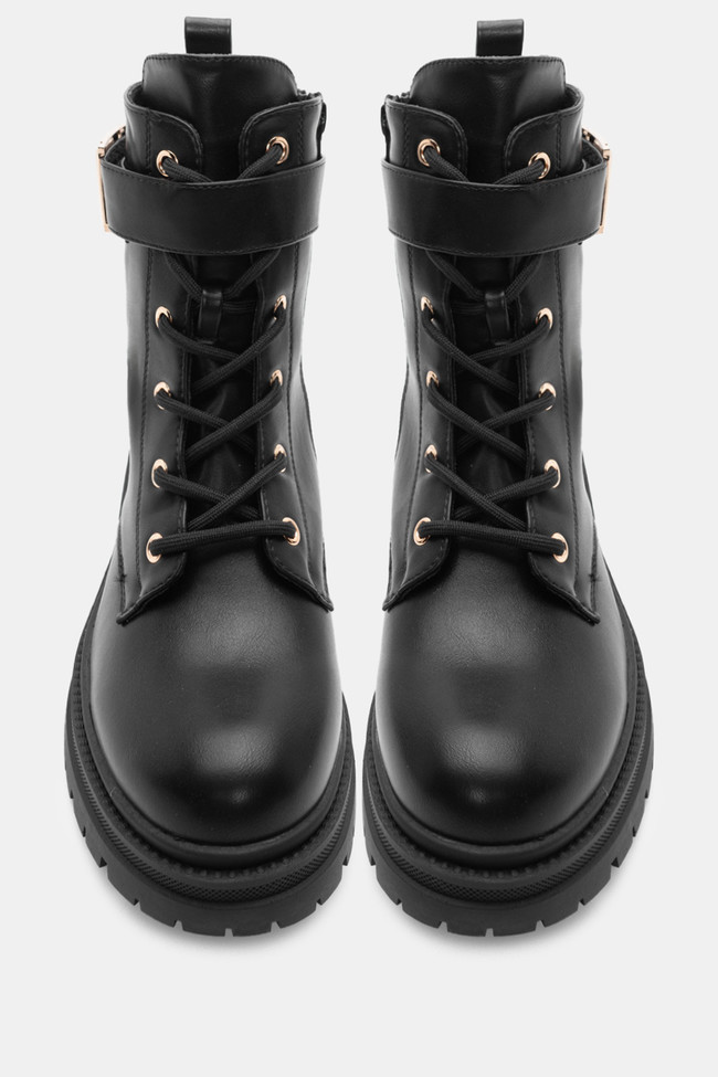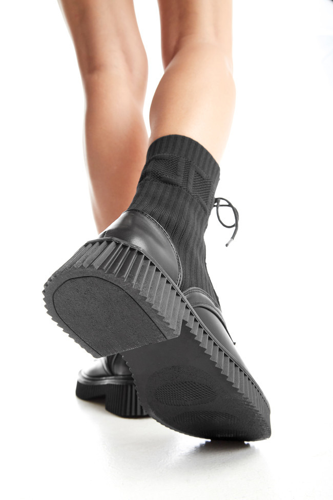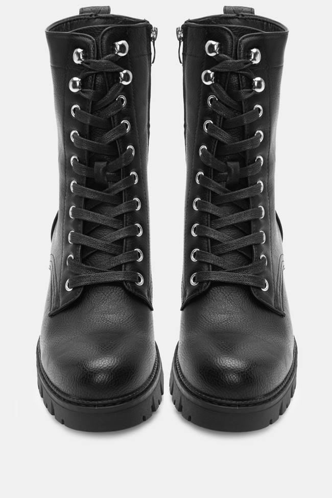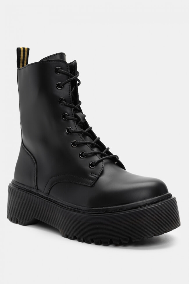 Gli stivaletti con doppia suola con suola carrarmato si accompagnano perfettamente alla culture rock e per questo sono perfetti con pezzi in pelle come gonne, leggings e giacche. Una classica giacca di pelle nera combinata con un jeans strappato è la combinazione perfetta per un look dinamico.