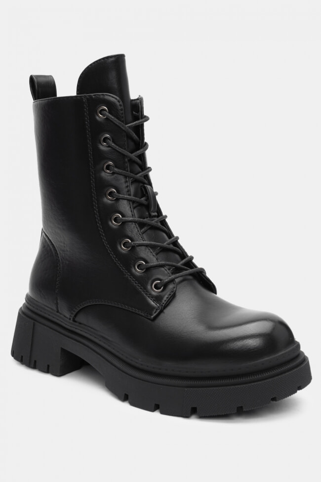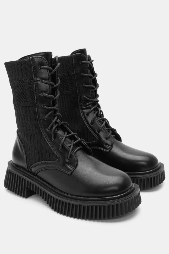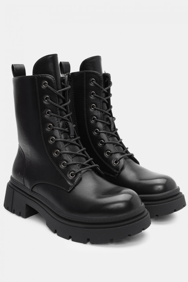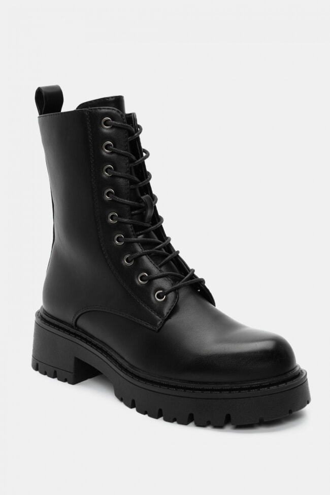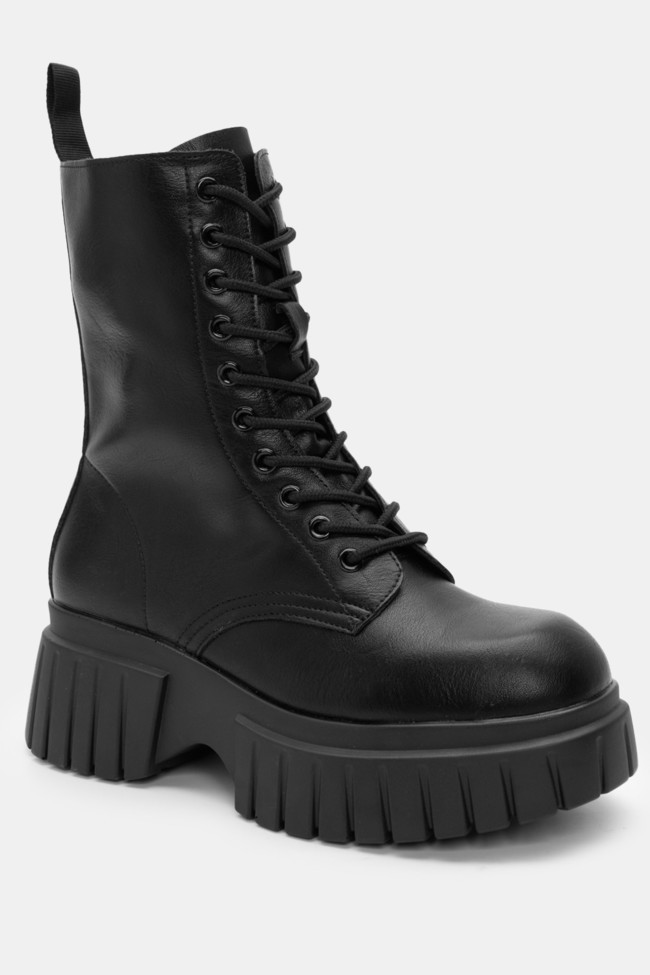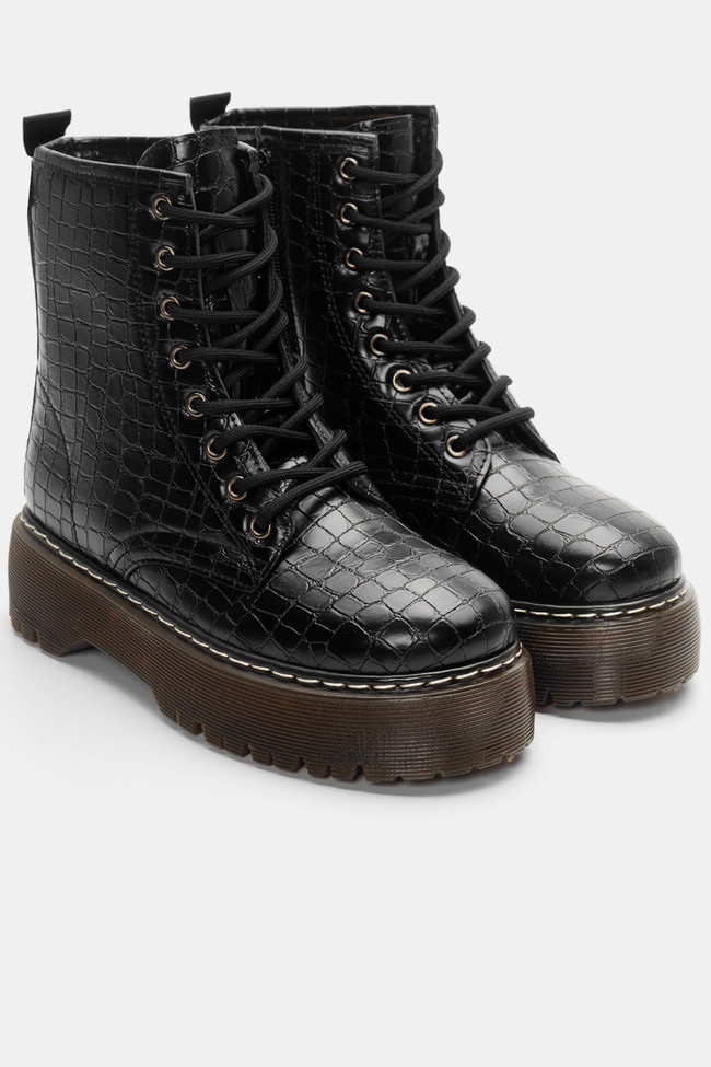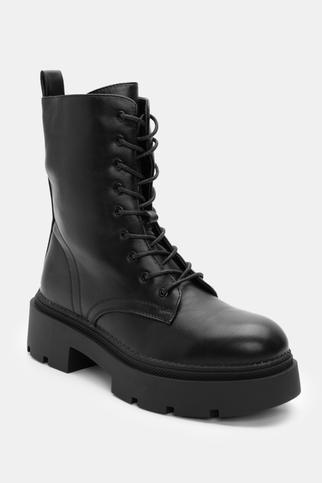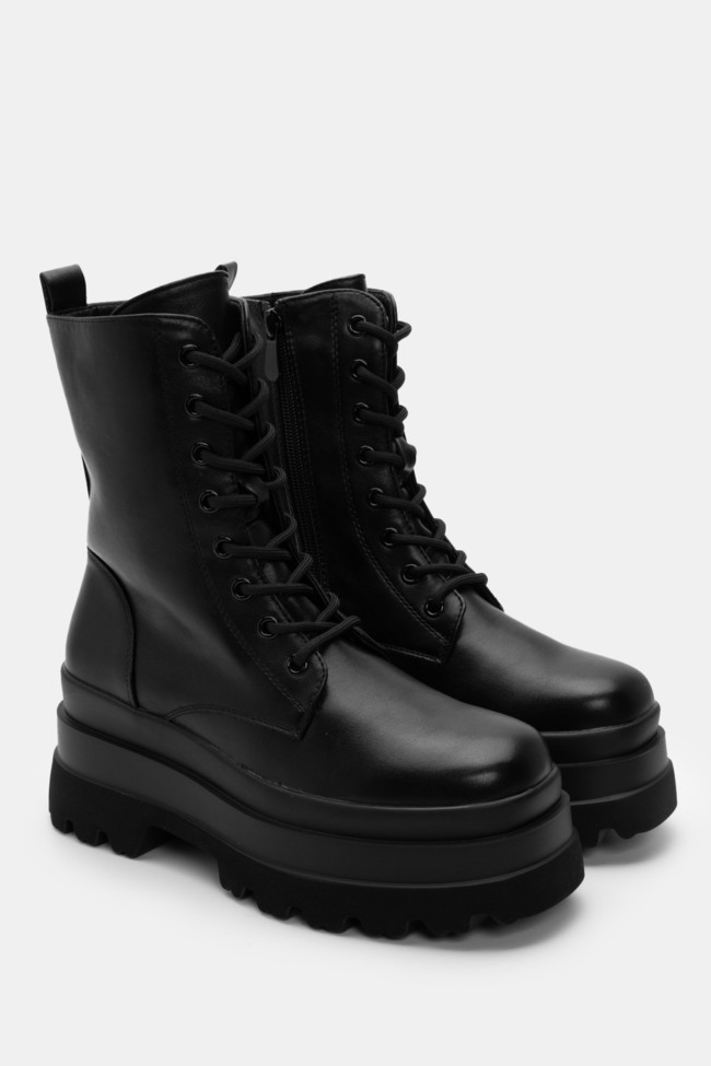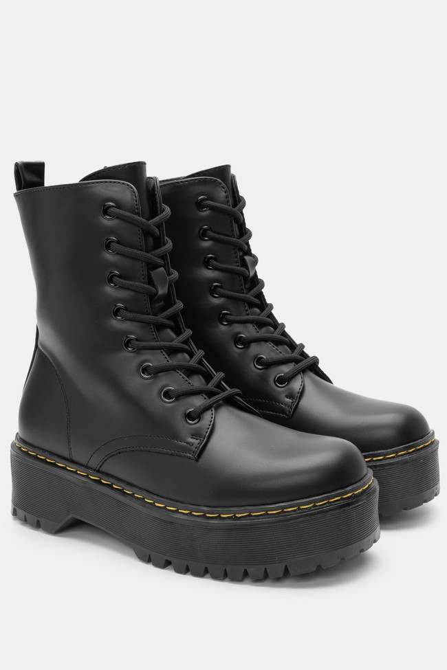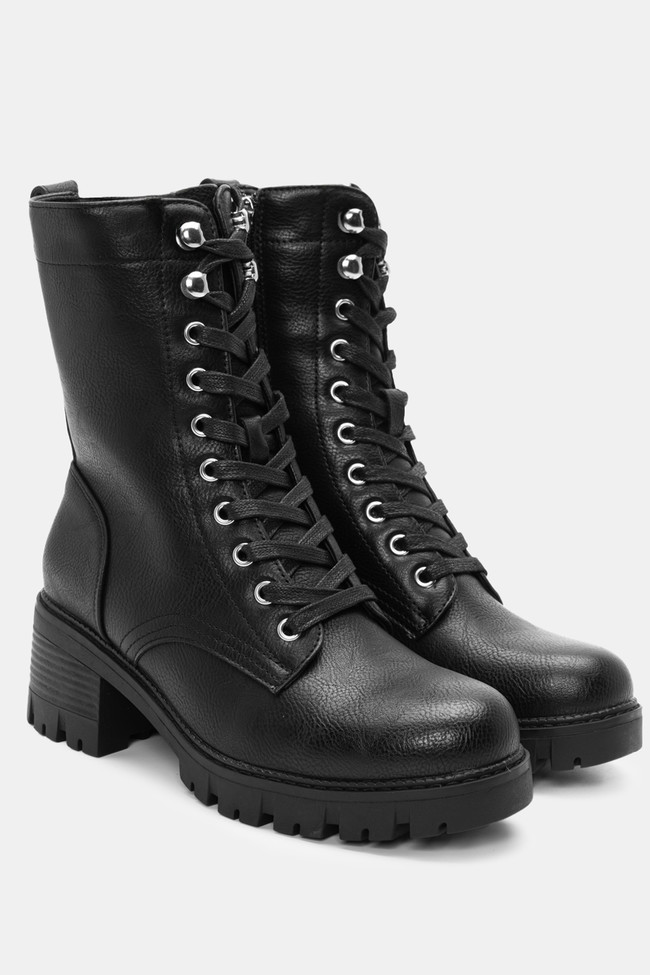 Gli stivaletti con doppia suola con suola carrarmato si accompagnano perfettamente alla culture rock e per questo sono perfetti con pezzi in pelle come gonne, leggings e giacche. Una classica giacca di pelle nera combinata con un jeans strappato è la combinazione perfetta per un look dinamico.