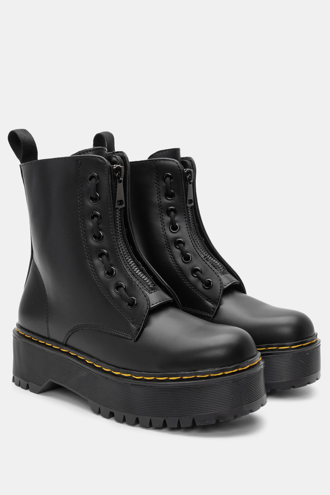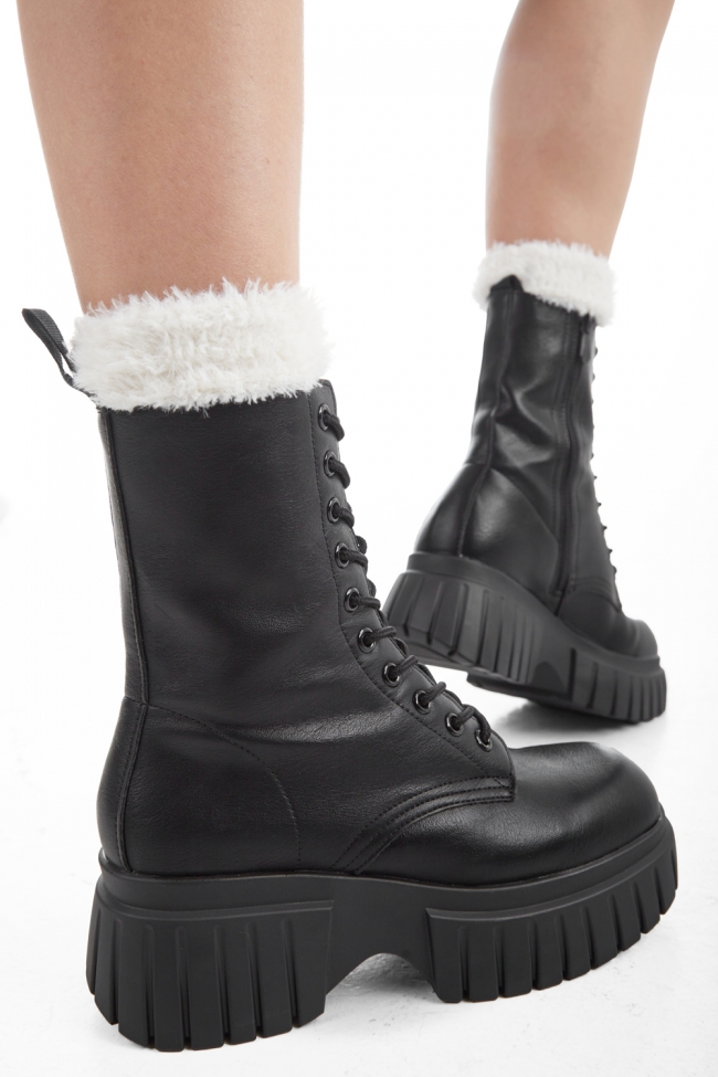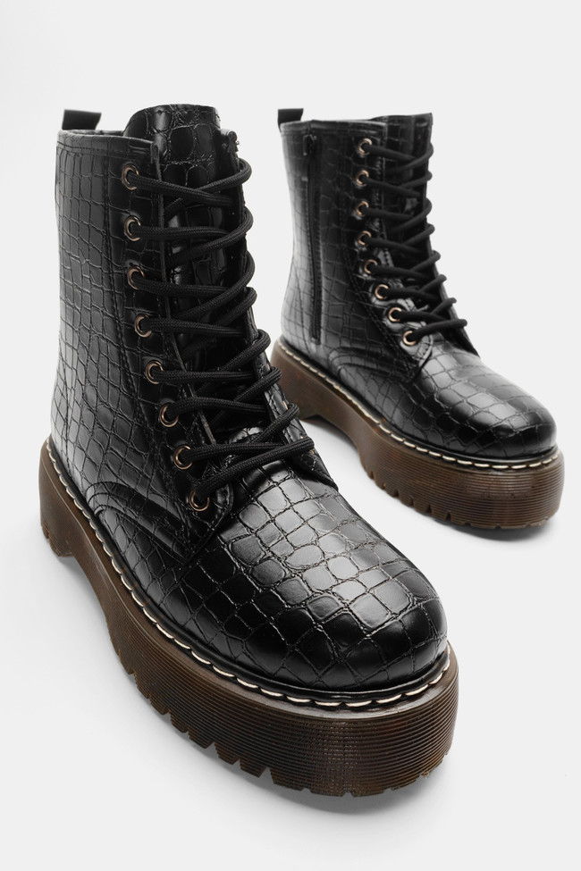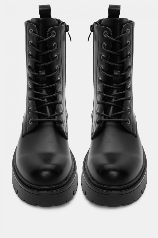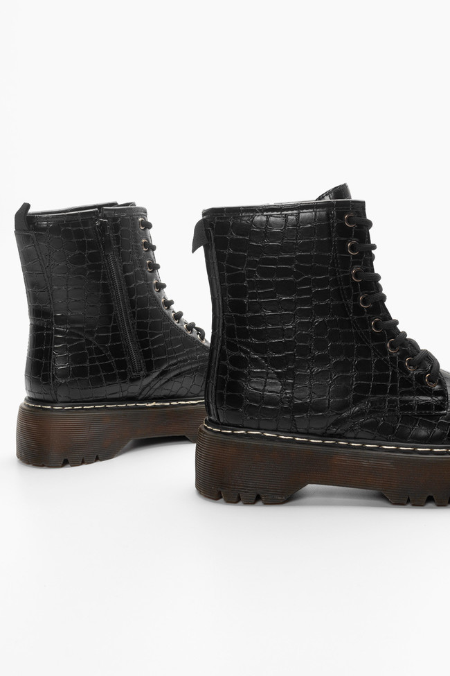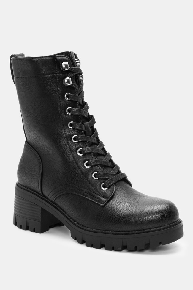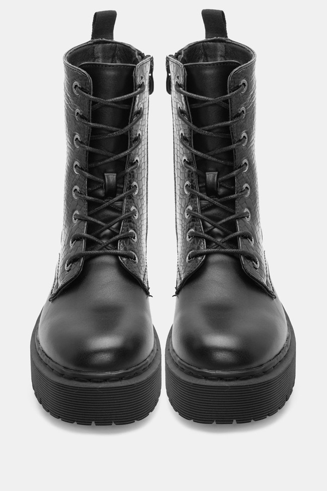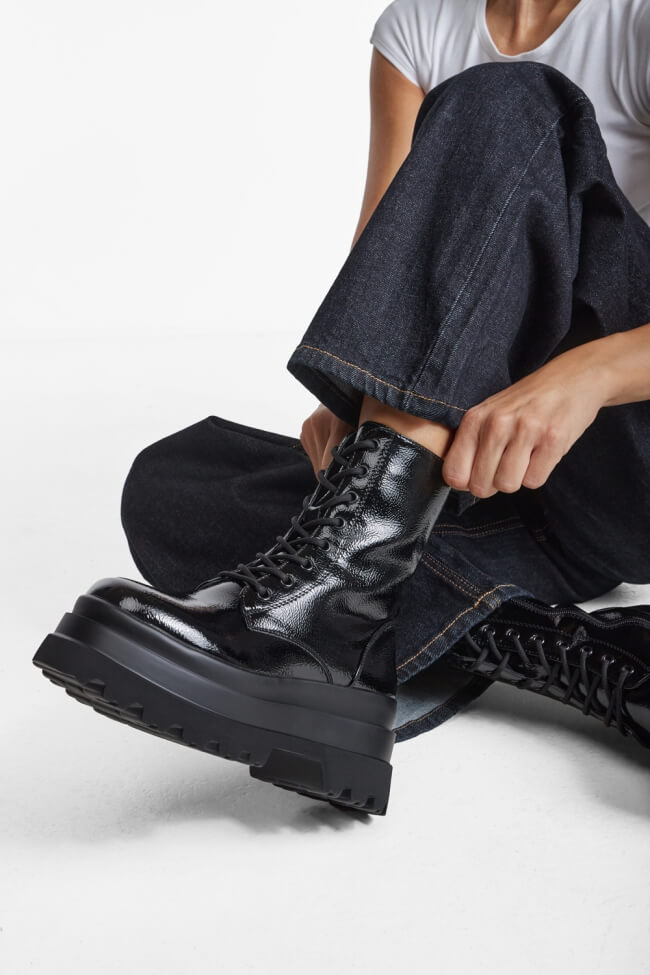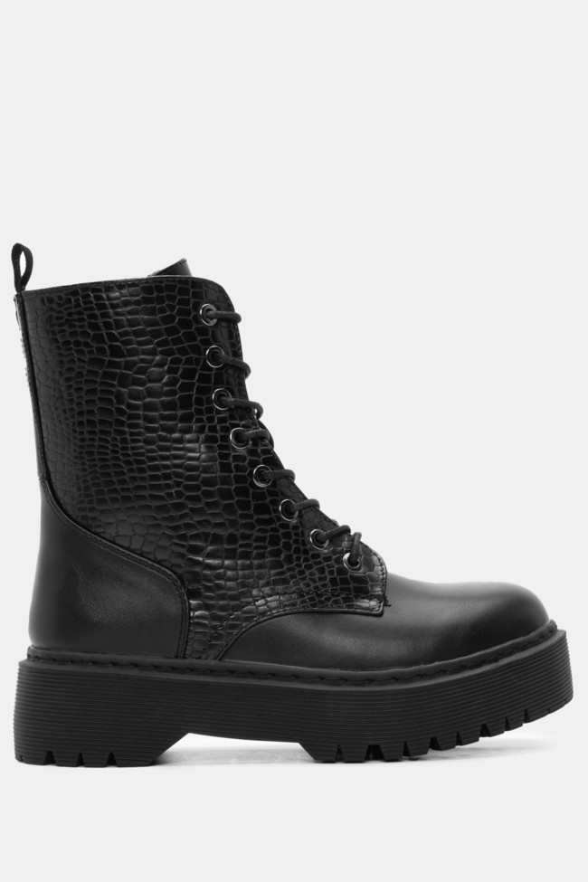 Gli stivaletti con doppia suola con suola carrarmato si accompagnano perfettamente alla culture rock e per questo sono perfetti con pezzi in pelle come gonne, leggings e giacche. Una classica giacca di pelle nera combinata con un jeans strappato è la combinazione perfetta per un look dinamico.