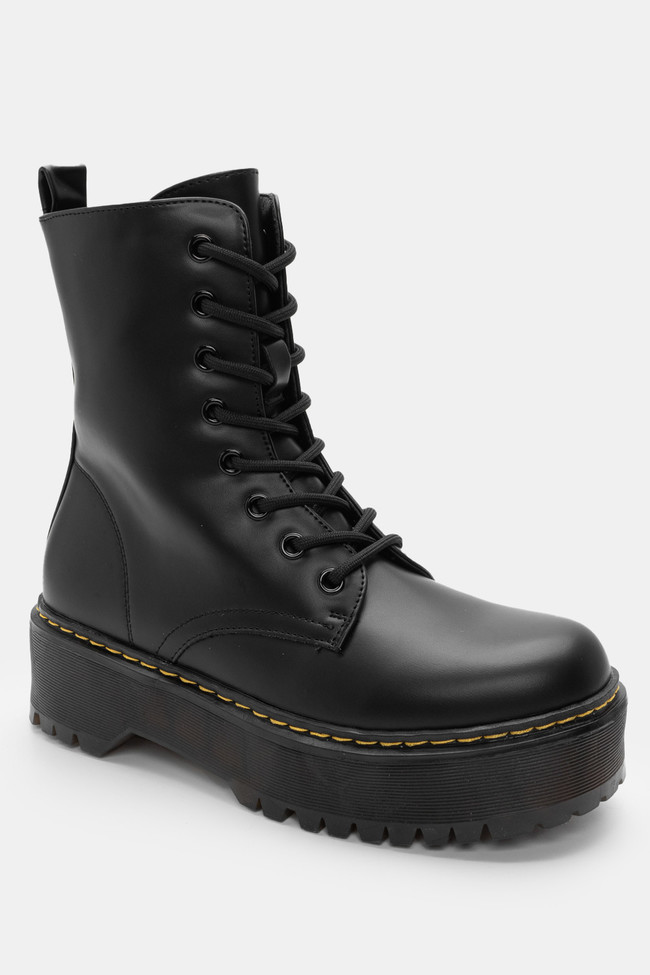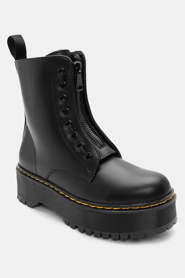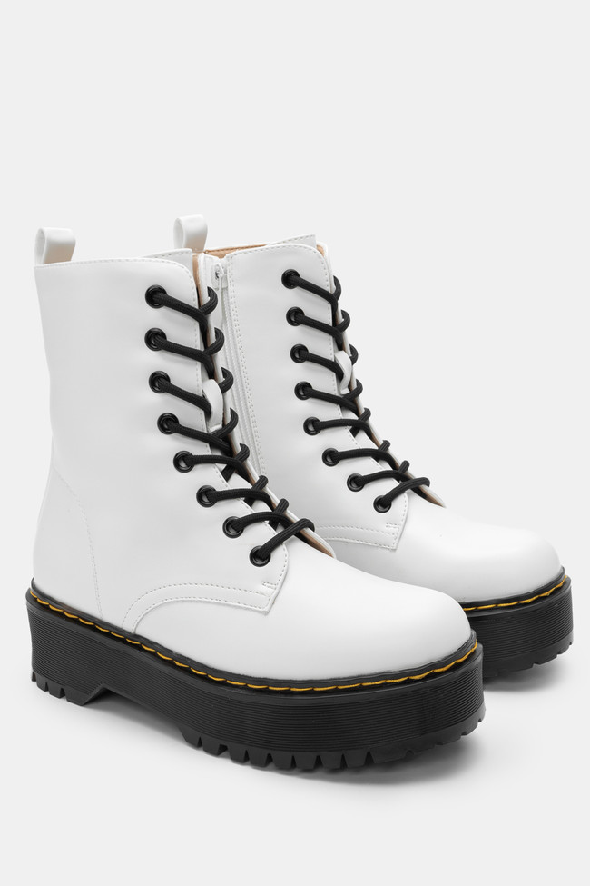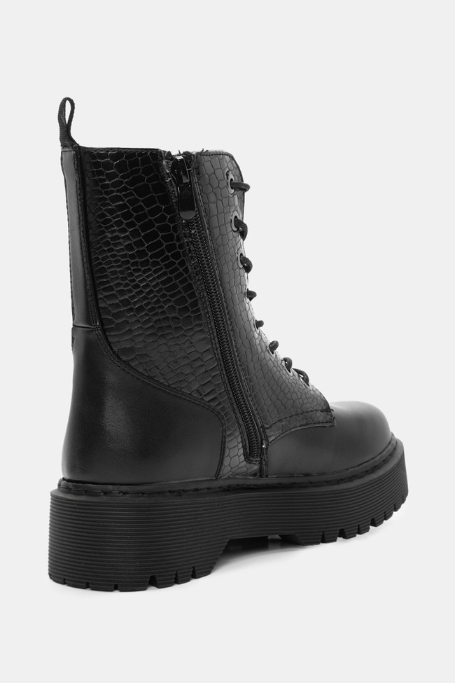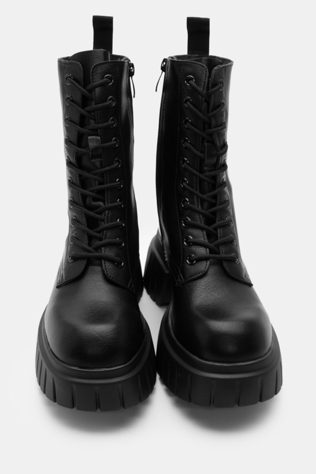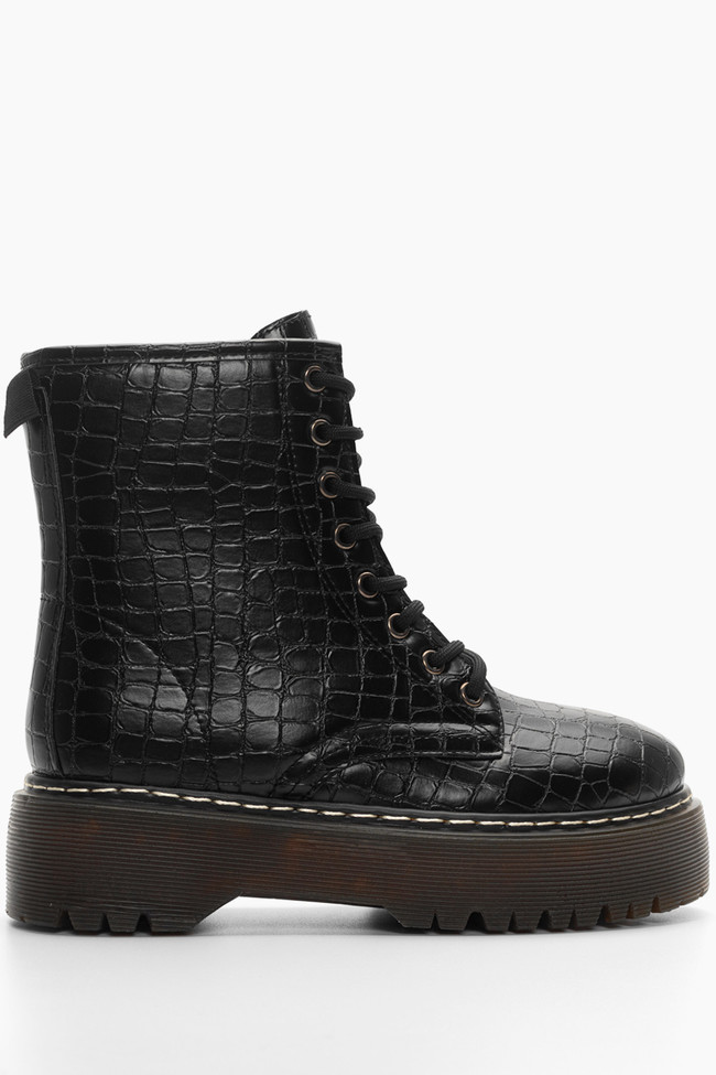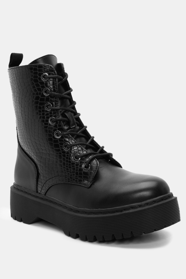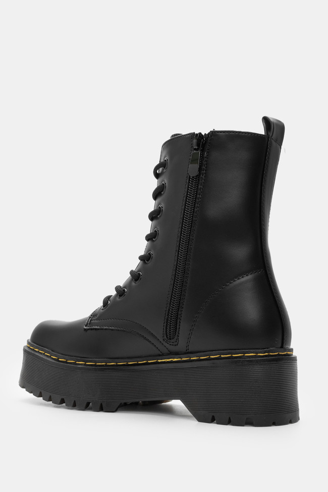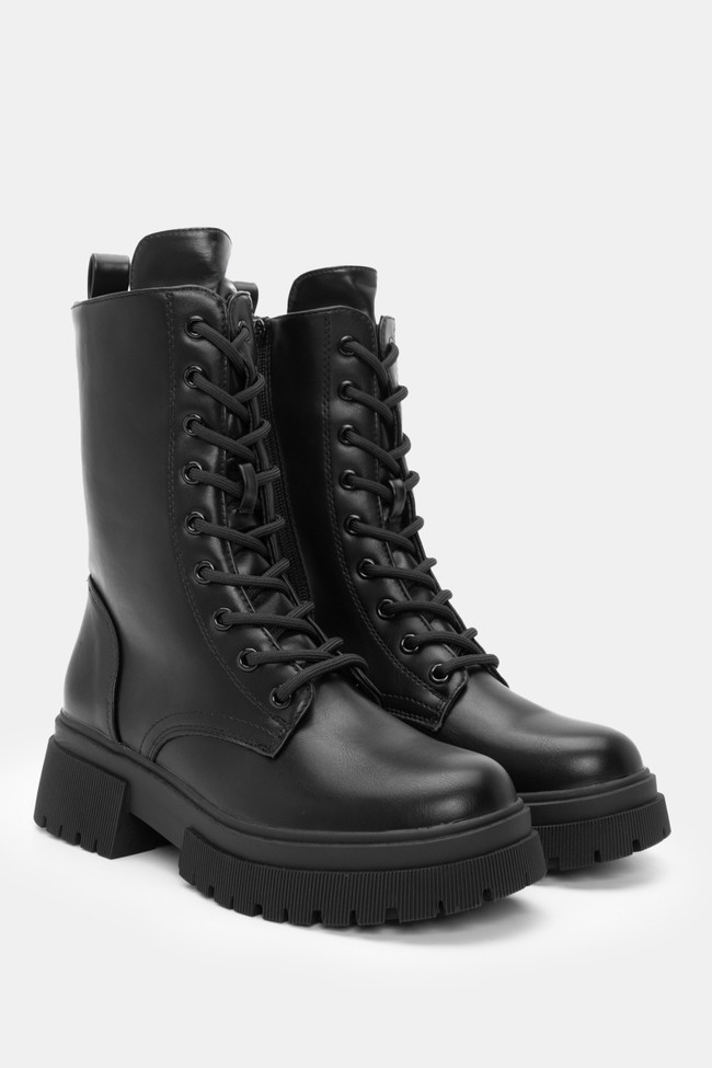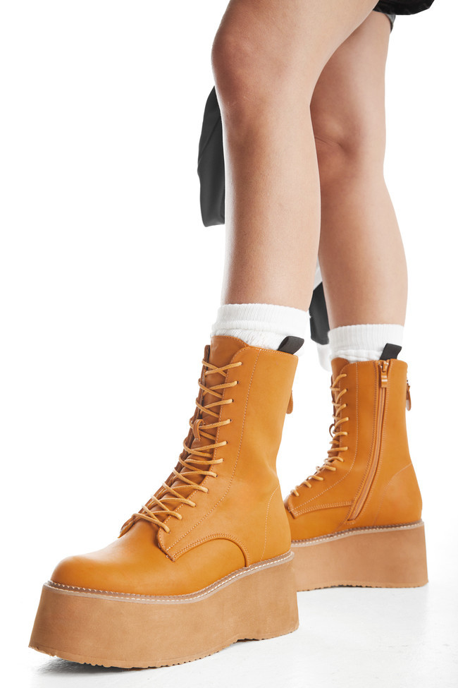 Gli stivaletti con doppia suola con suola carrarmato si accompagnano perfettamente alla culture rock e per questo sono perfetti con pezzi in pelle come gonne, leggings e giacche. Una classica giacca di pelle nera combinata con un jeans strappato è la combinazione perfetta per un look dinamico.