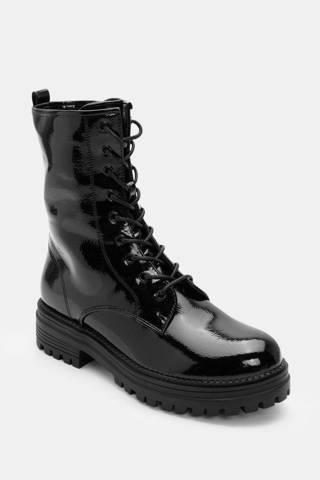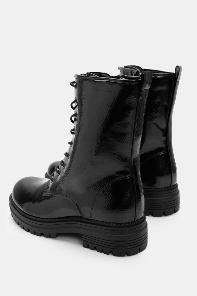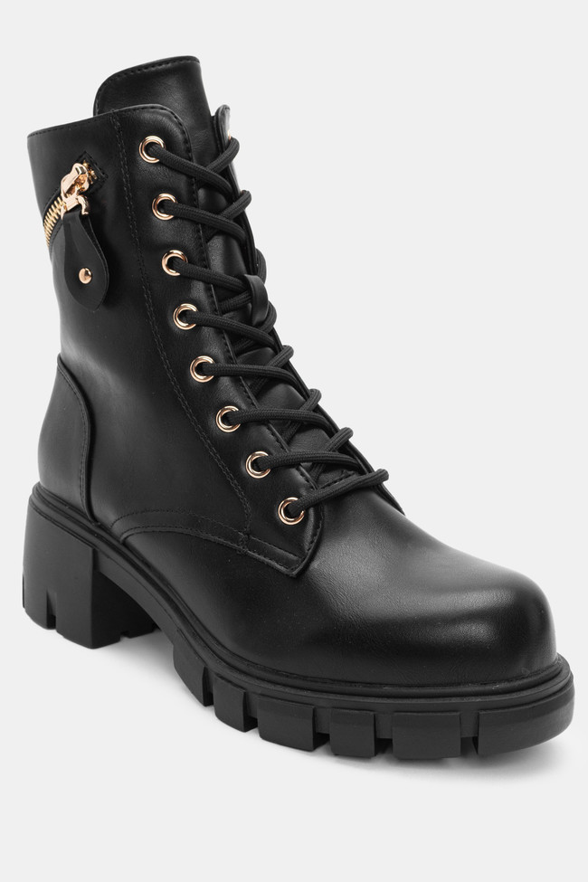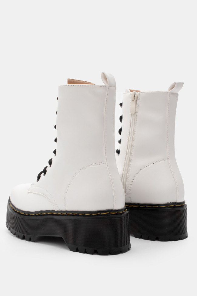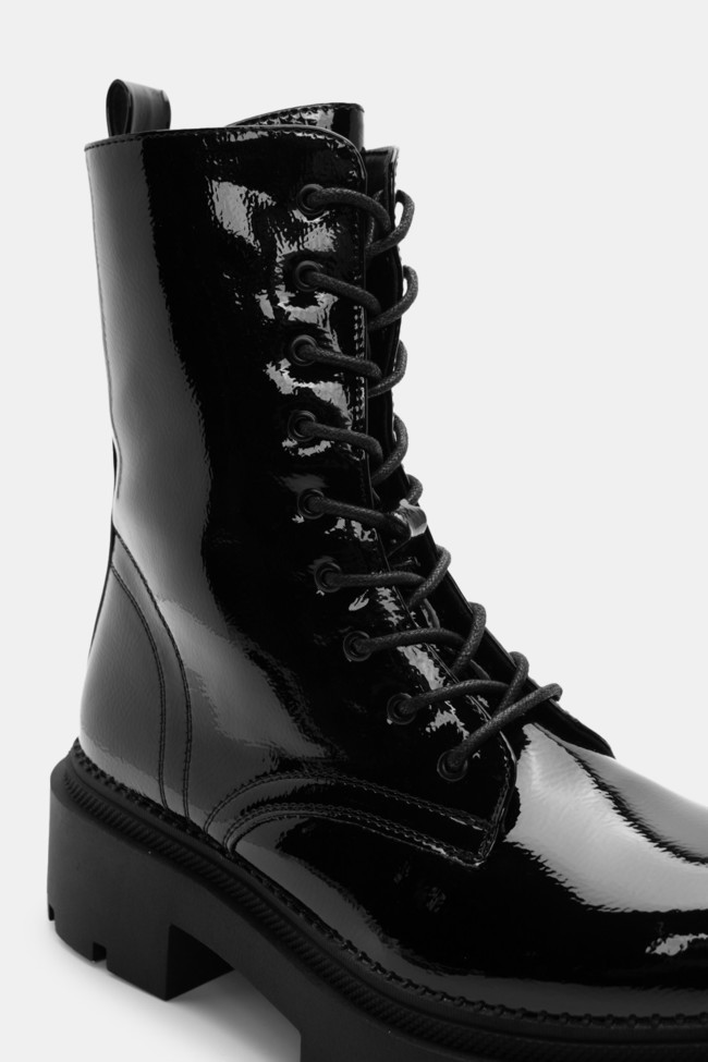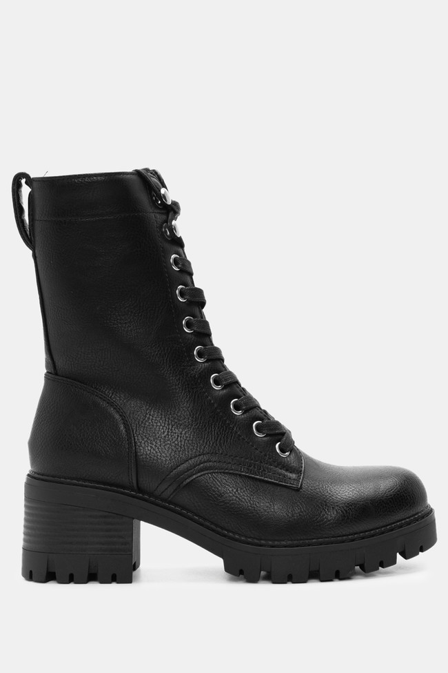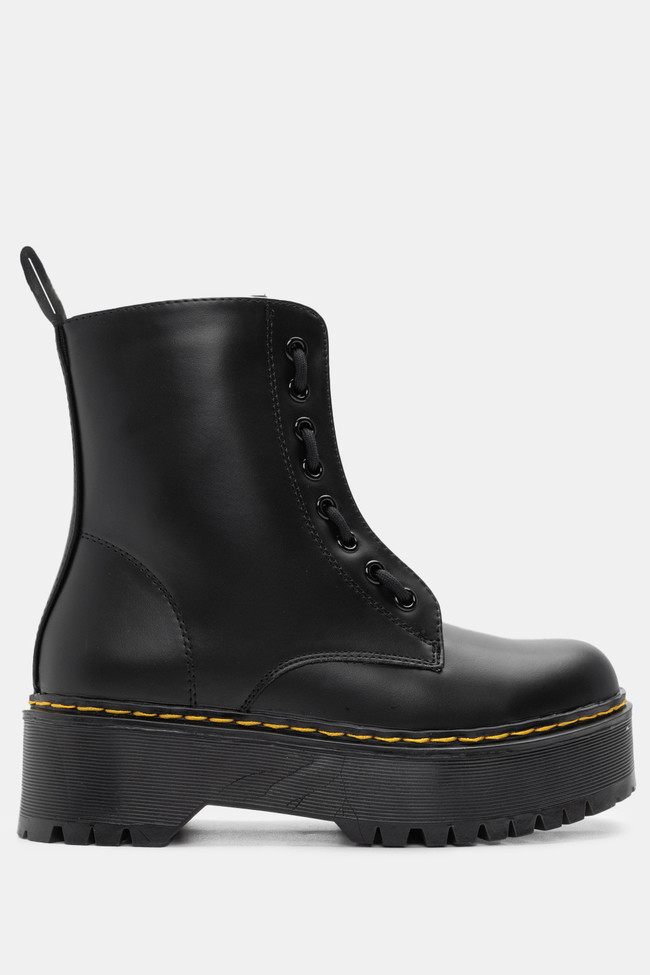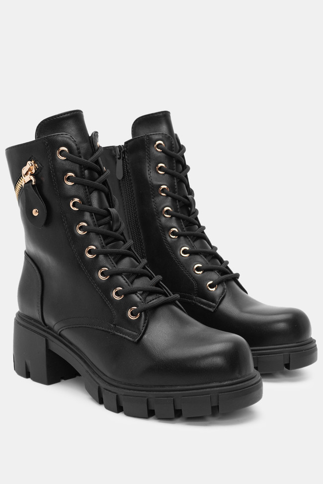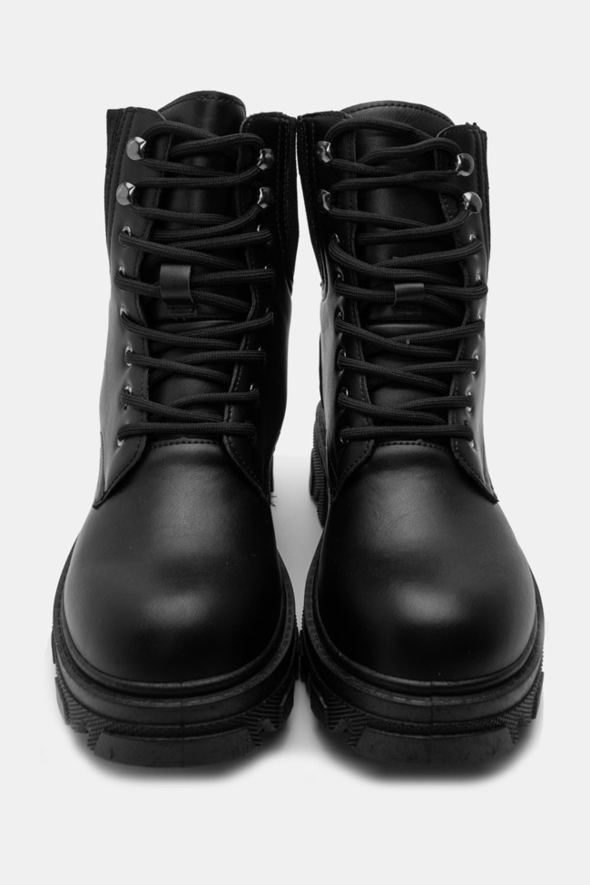 Gli stivaletti con doppia suola con suola carrarmato si accompagnano perfettamente alla culture rock e per questo sono perfetti con pezzi in pelle come gonne, leggings e giacche. Una classica giacca di pelle nera combinata con un jeans strappato è la combinazione perfetta per un look dinamico.