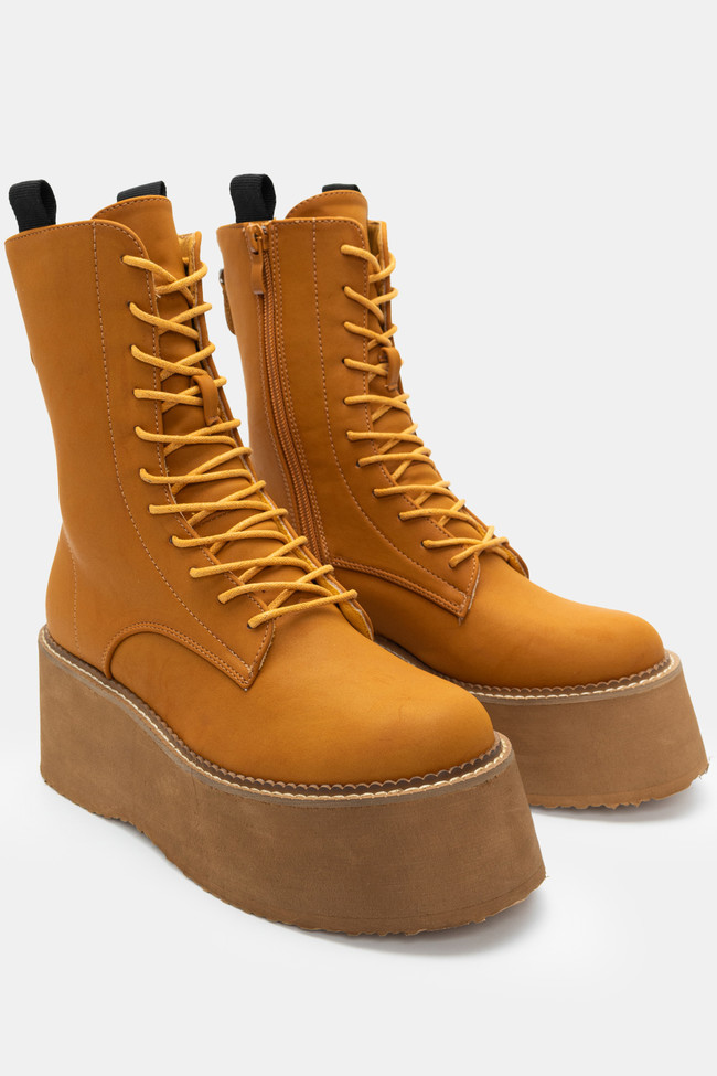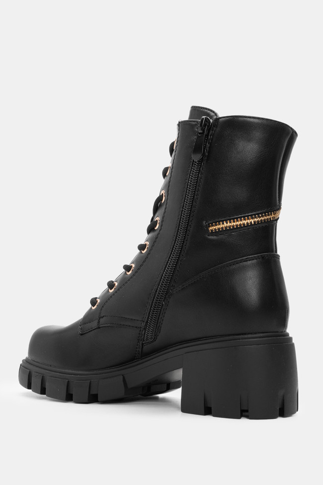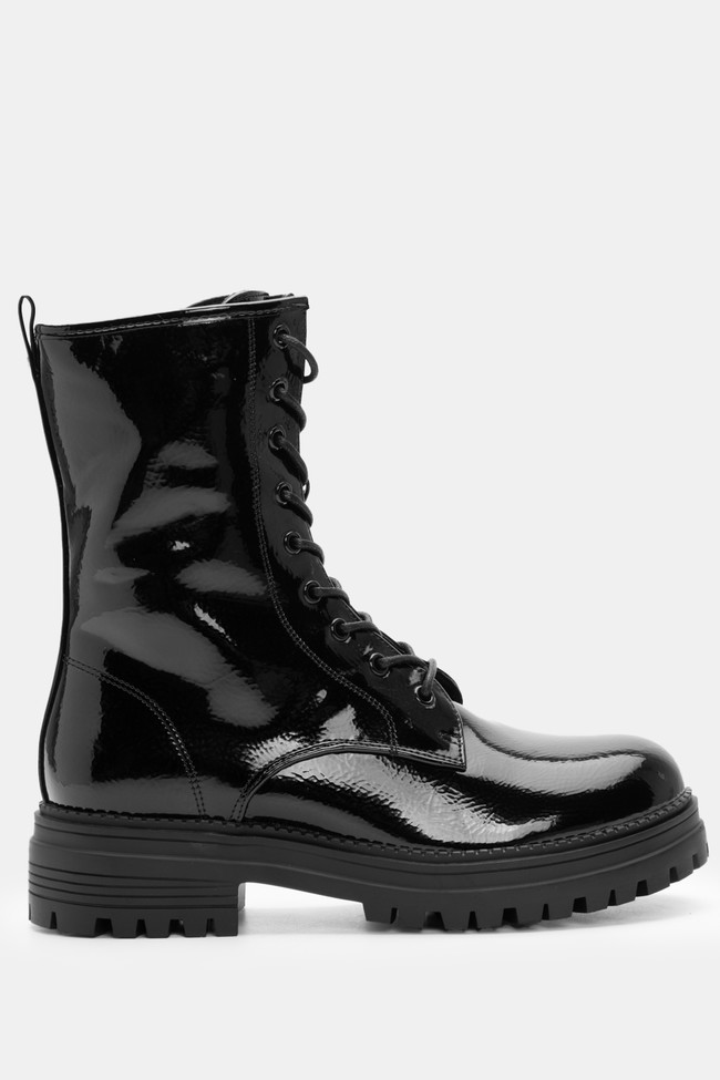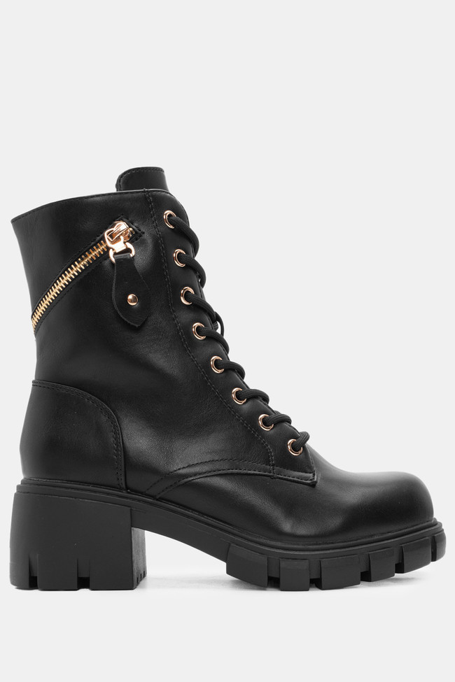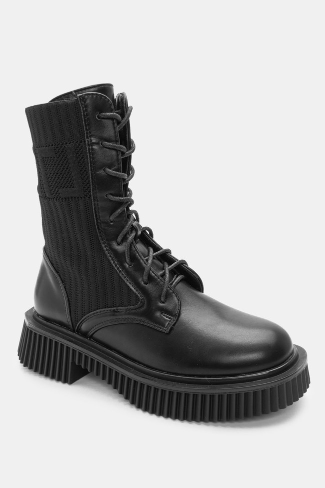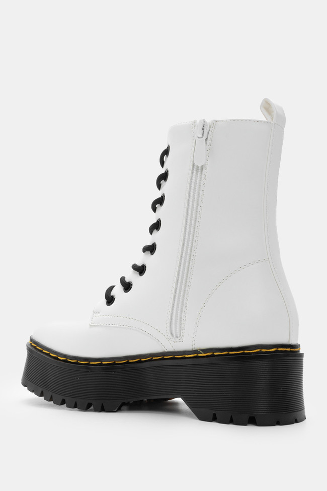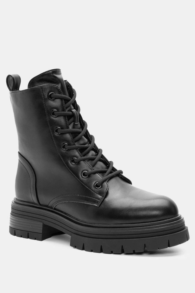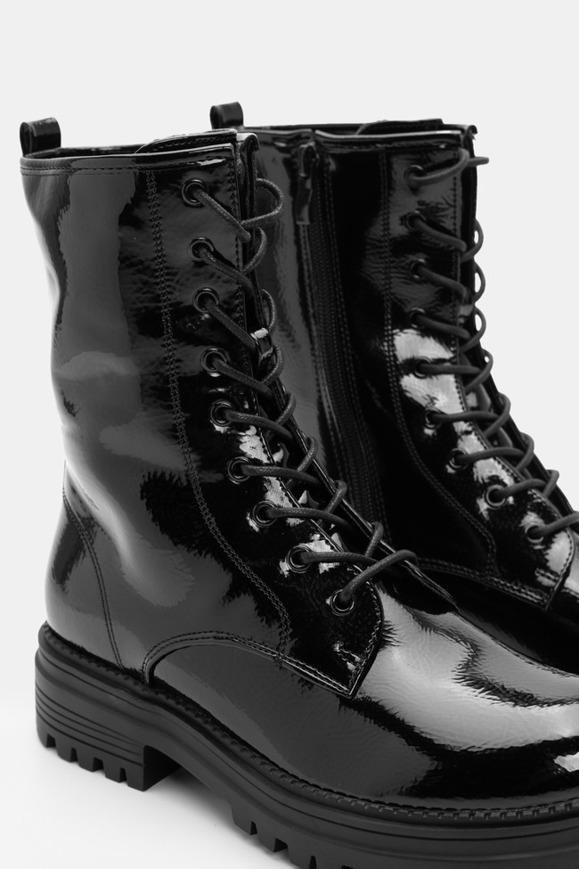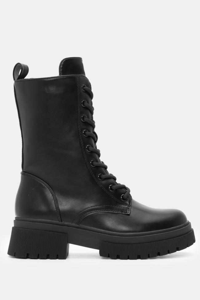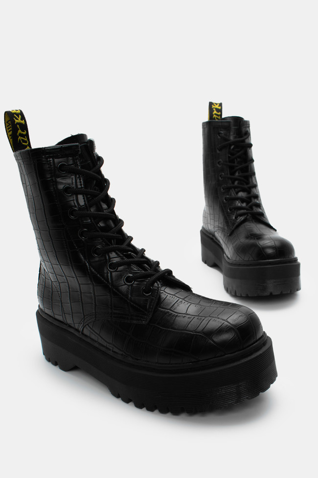 Gli stivaletti con doppia suola con suola carrarmato si accompagnano perfettamente alla culture rock e per questo sono perfetti con pezzi in pelle come gonne, leggings e giacche. Una classica giacca di pelle nera combinata con un jeans strappato è la combinazione perfetta per un look dinamico.