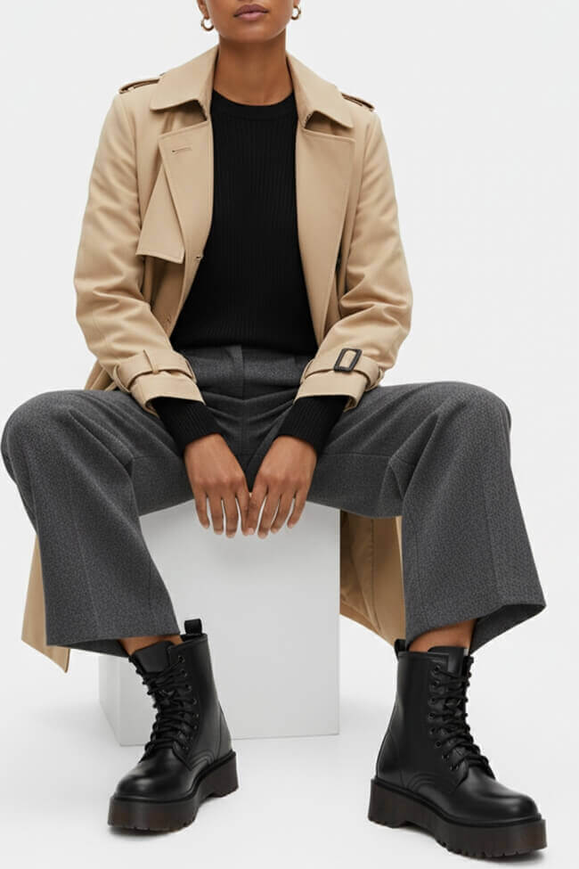 Gli stivaletti con doppia suola da donna possono sposarsi perfettamente con pezzi molto femminili e creare un contrasto che esalterà il tuo stile aggiungendo un tocco spigoloso.