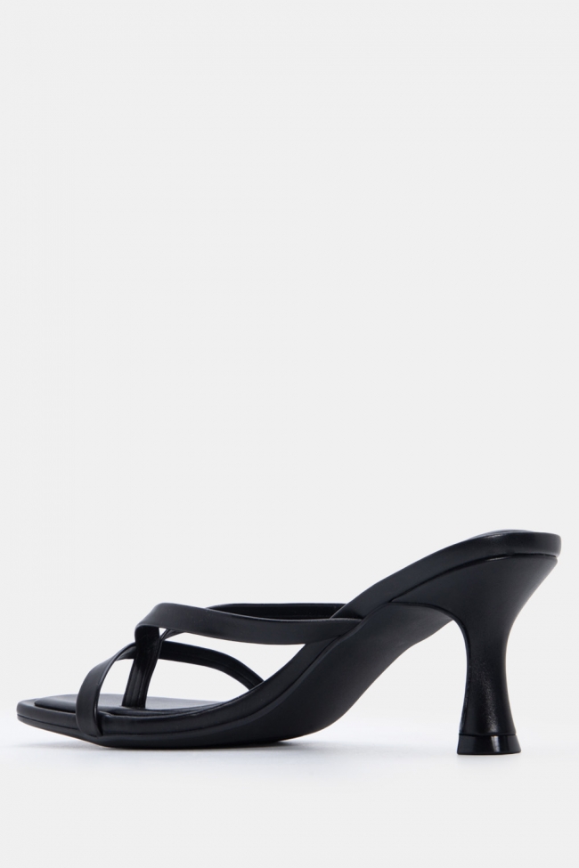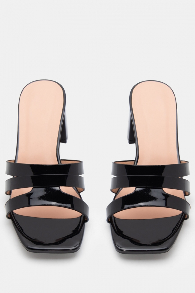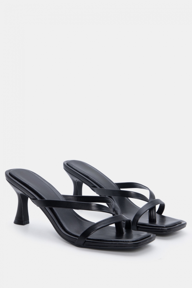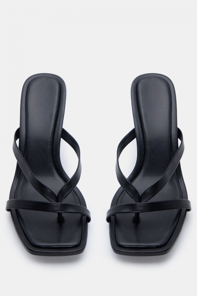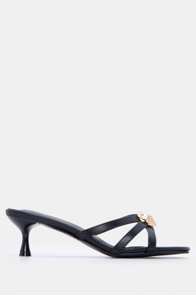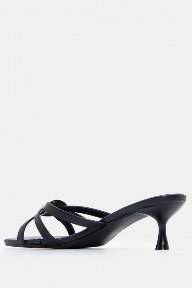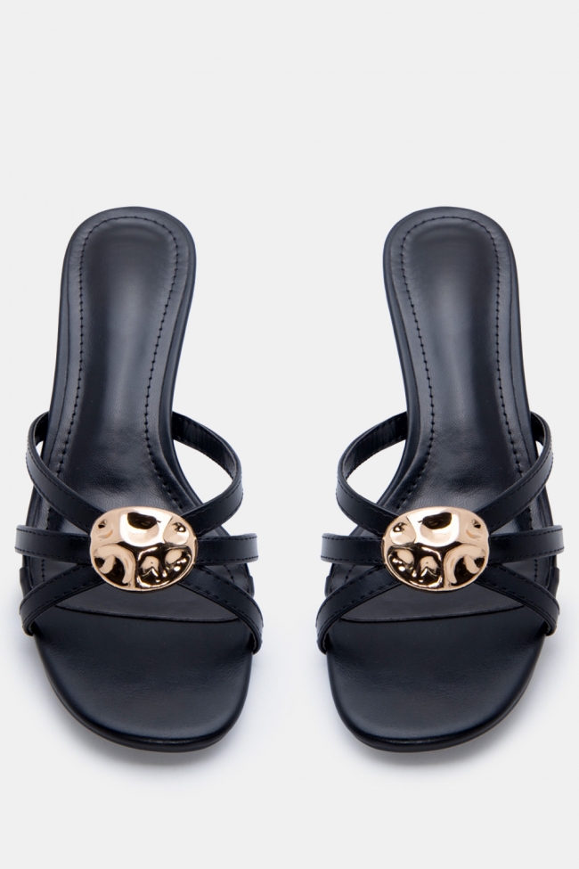 - Ανοιχτά mules με στριφτό λουράκι: Έχουν κάτι κομψό και παιχνιδιάρικο μαζί. Το twisted λουράκι τραβάει το βλέμμα και προσθέτει κίνηση. Ειδικά αν το συνδυάσεις με total black look, κάνει όλη τη διαφορά.