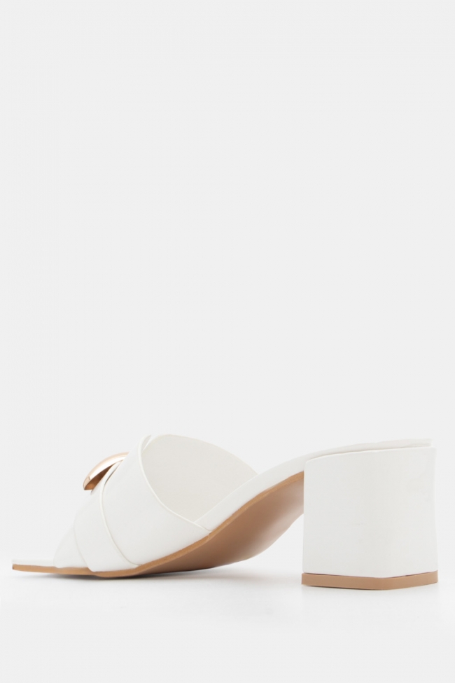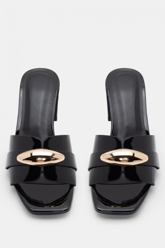 - Με μεταλλική αγκράφα: Statement, classy και πολύ chic. Αν θες να αναβαθμίσεις ακόμα και το πιο basic outfit, αυτό το γυναικείο mule είναι ότι πρέπει. Μπορείς να το φορέσεις και στο γραφείο και σε βραδινό ποτό. Ναι, τόσο ευέλικτο.