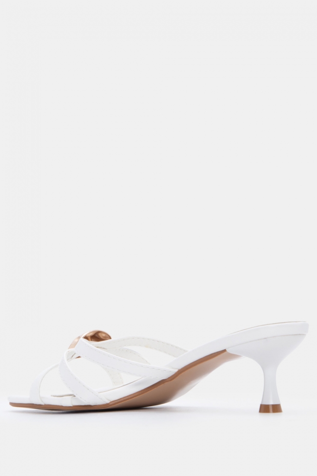 - Mules με χιαστί λουράκι: Απλά, αλλά καθόλου βαρετά. Το χιαστί δίνει extra σταθερότητα και στιλ. Έπλεξε τα σε nude ή metallic για καθημερινό glam. Ταιριάζουν υπέροχα με midi φούστες και wide leg jeans.