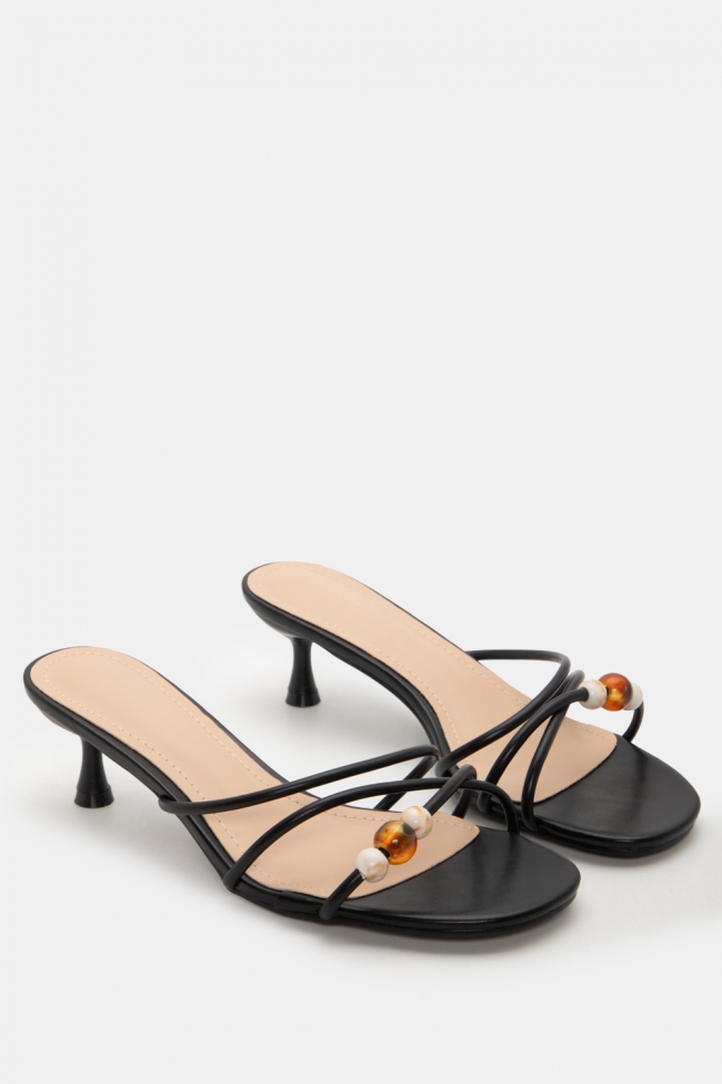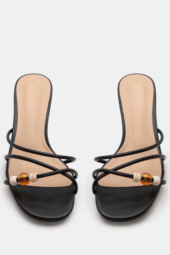 - Ανοιχτά mules με στριφτό λουράκι: Έχουν κάτι κομψό και παιχνιδιάρικο μαζί. Το twisted λουράκι τραβάει το βλέμμα και προσθέτει κίνηση. Ειδικά αν το συνδυάσεις με total black look, κάνει όλη τη διαφορά.