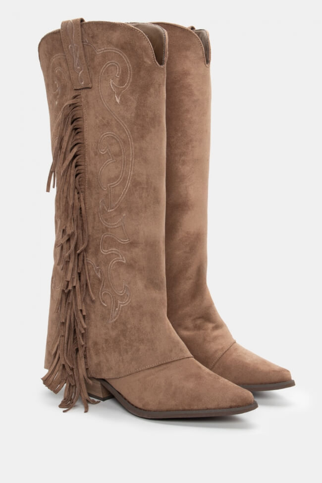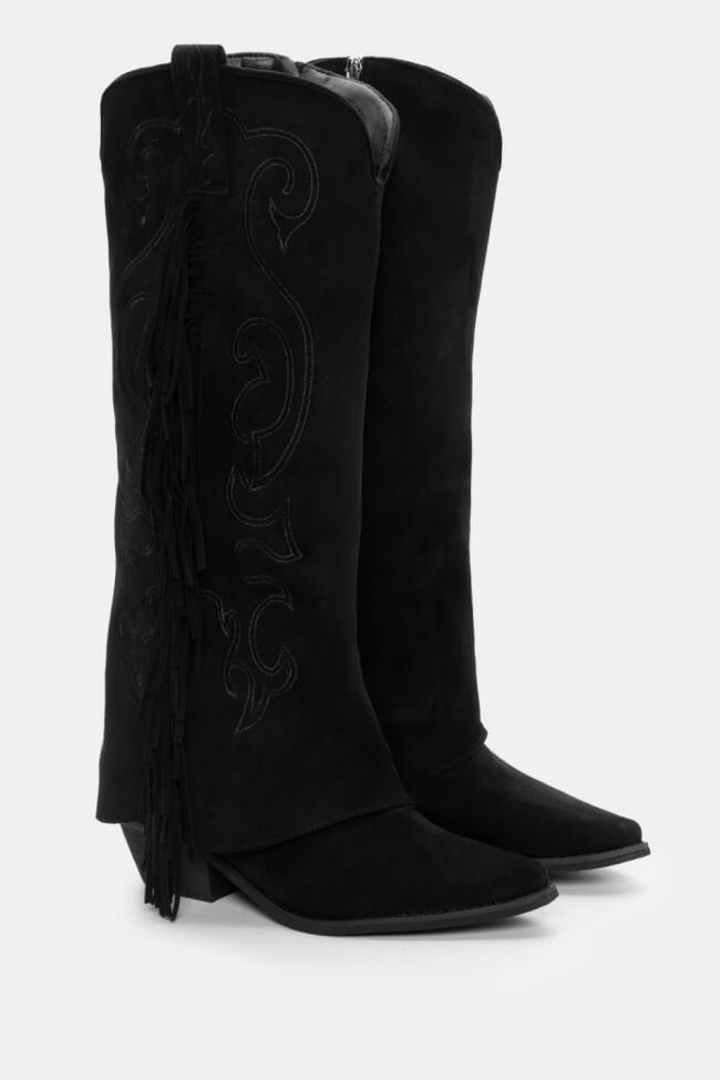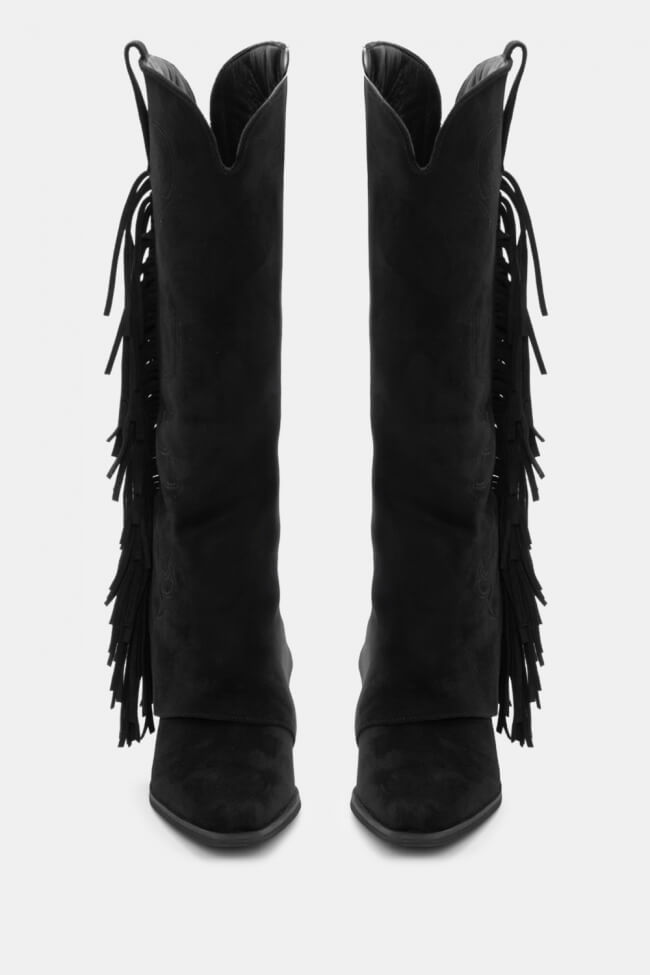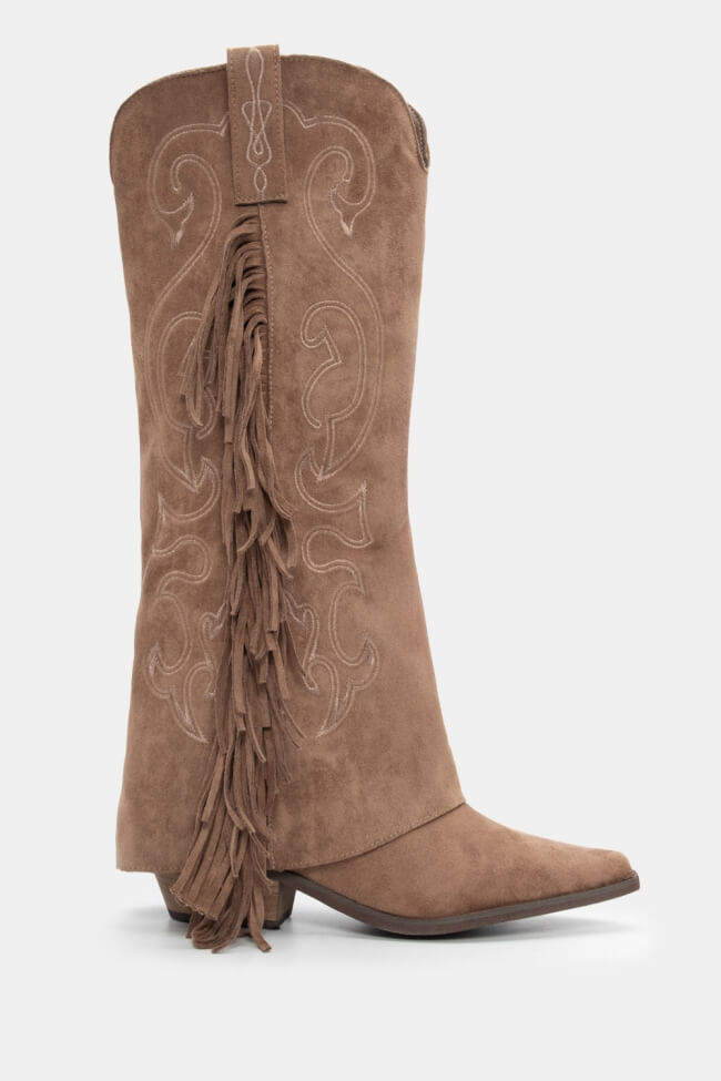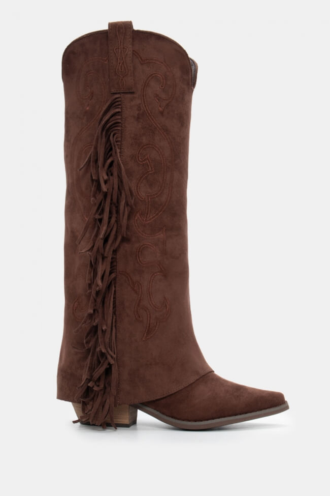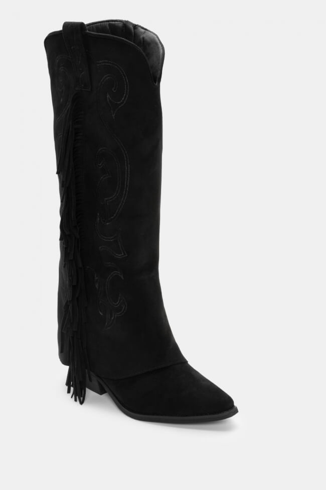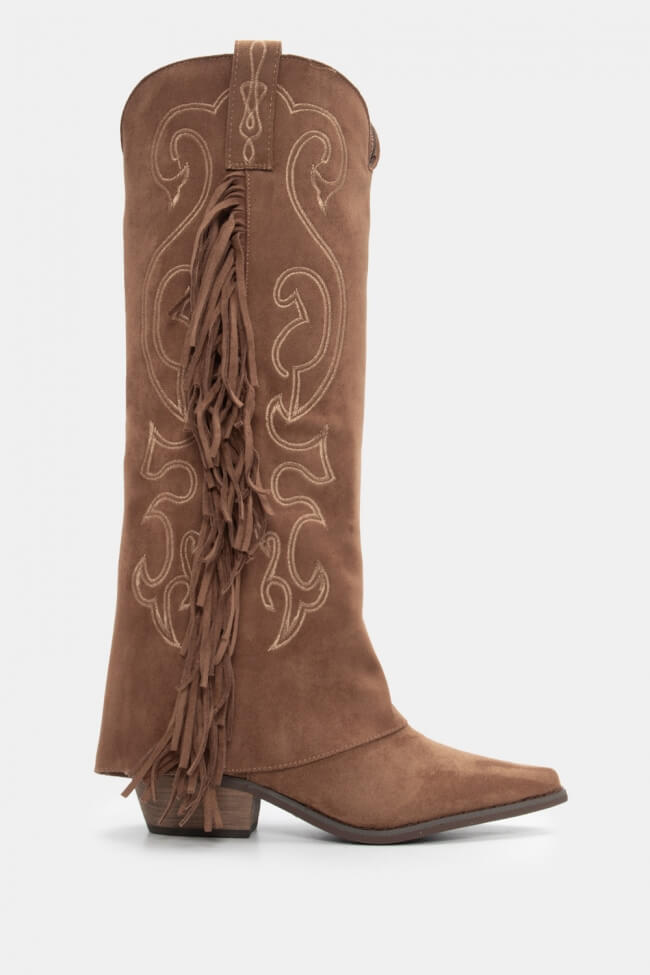Μπότες Cowboy με Εφέ Αναδιπλούμενης Φάσας & Κρόσσια