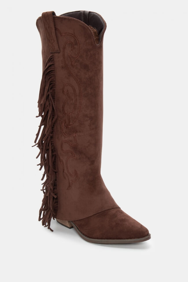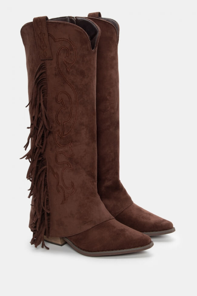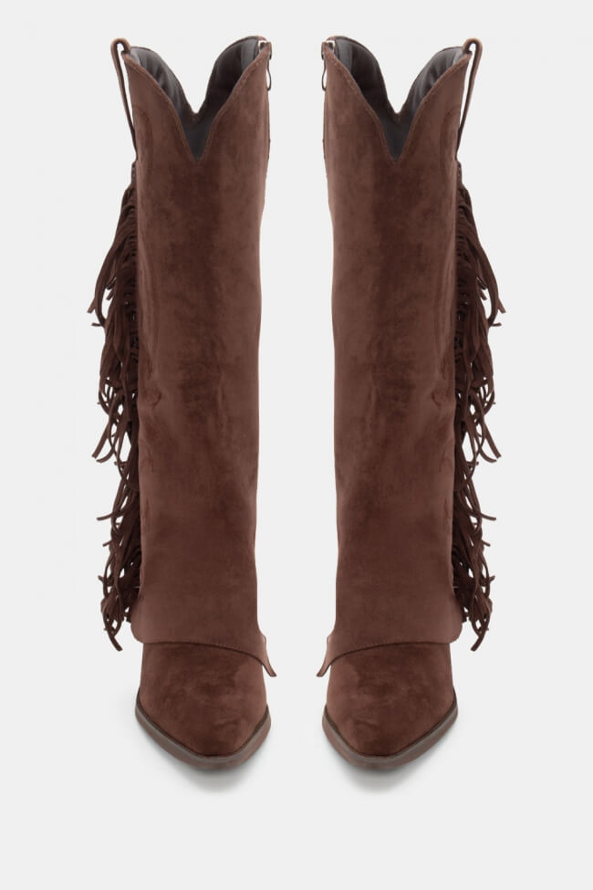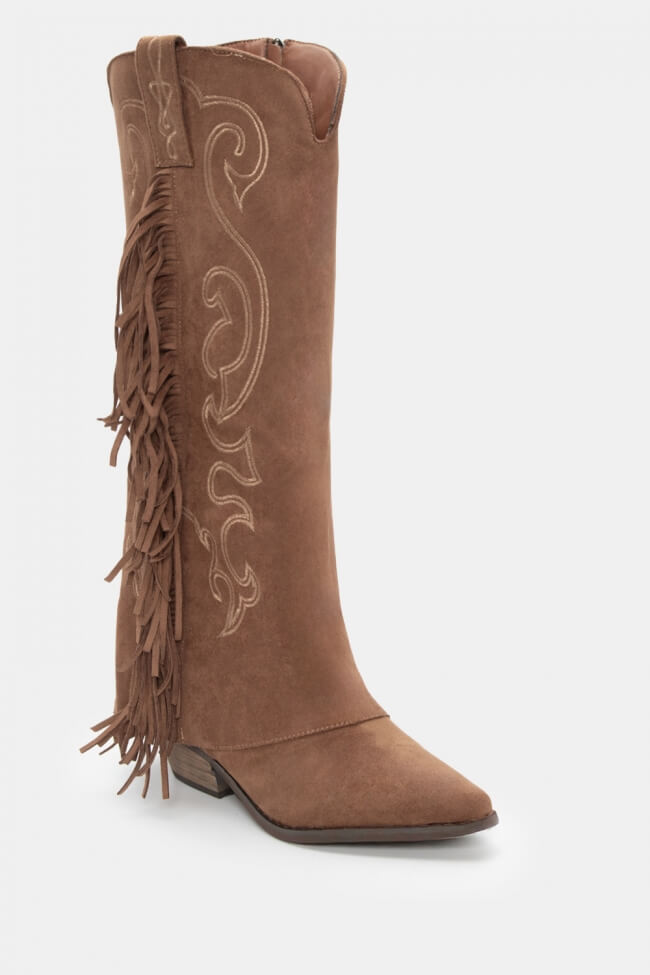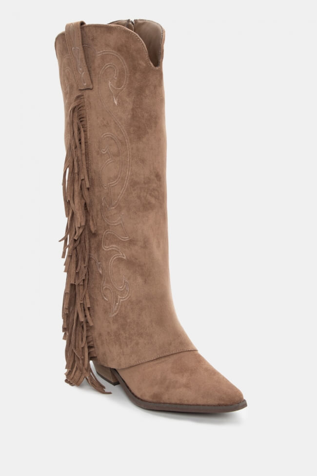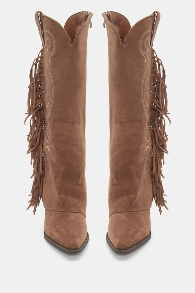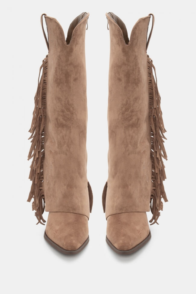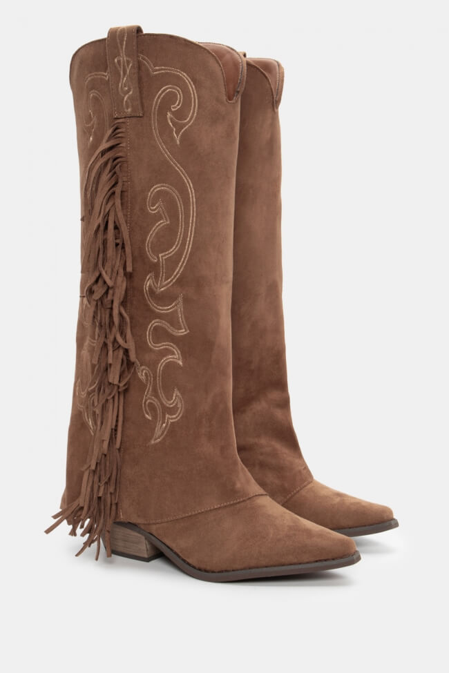 Μπότες Cowboy με Εφέ Αναδιπλούμενης Φάσας & Κρόσσια