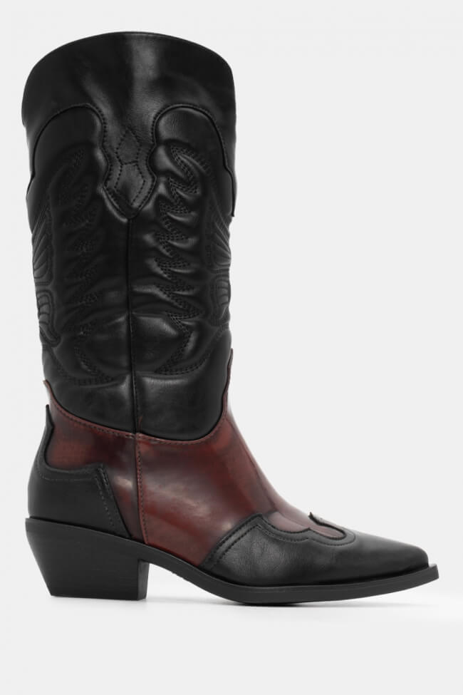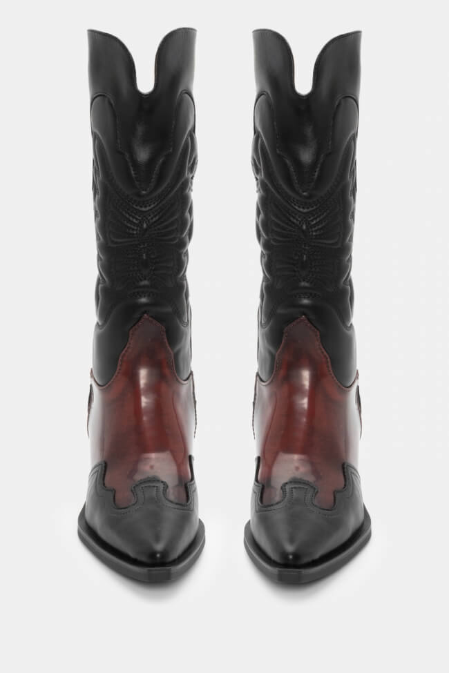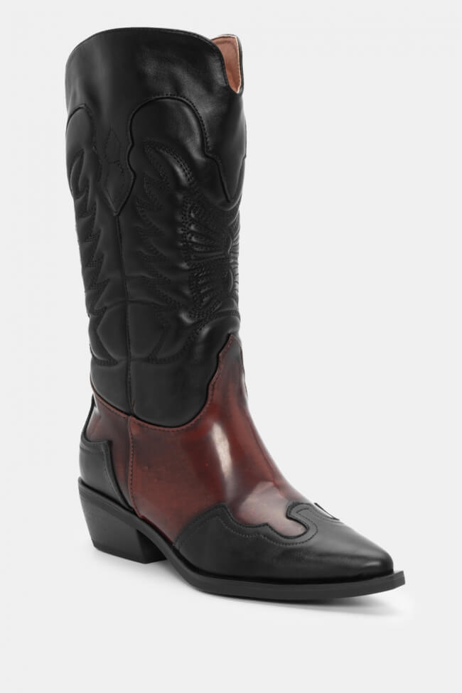 Μπότες Cowboy σε Συνδυασμό Υλικών & Κέντημα