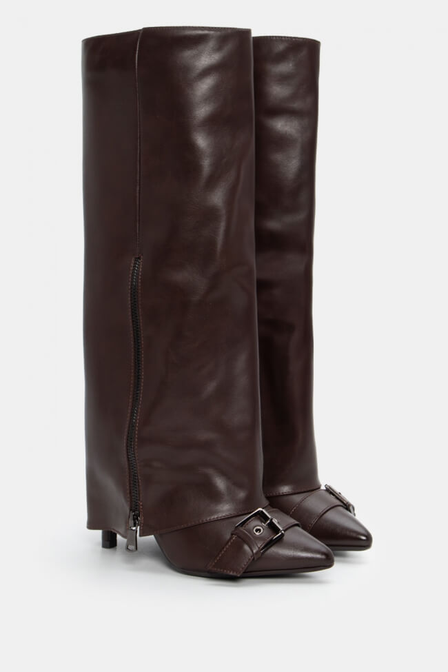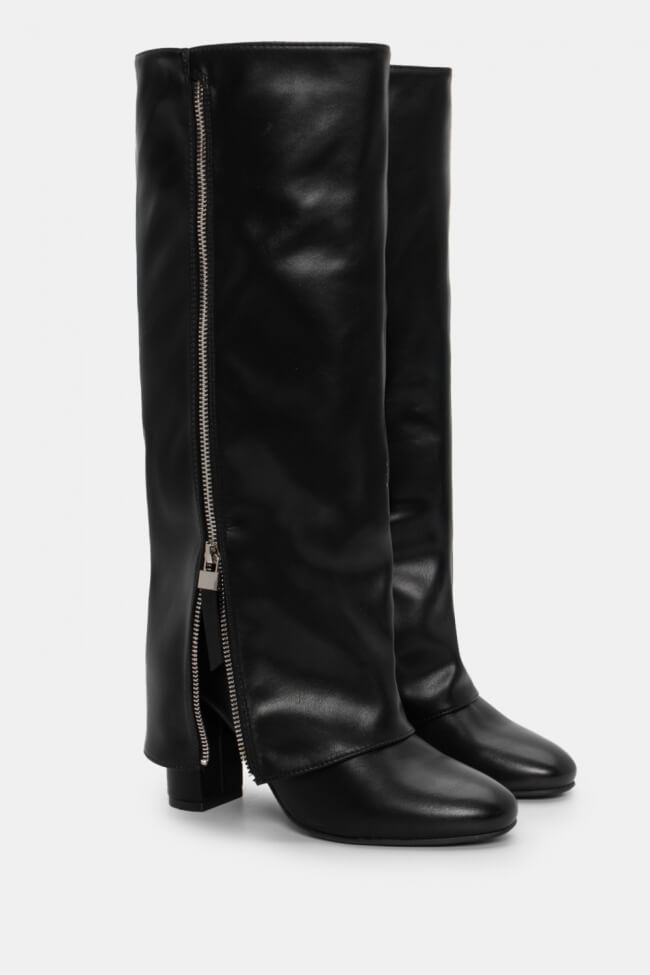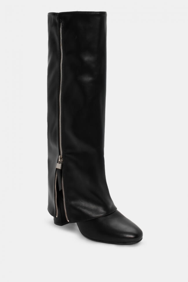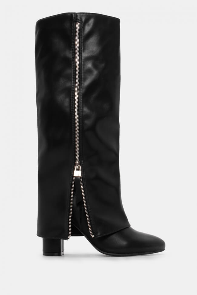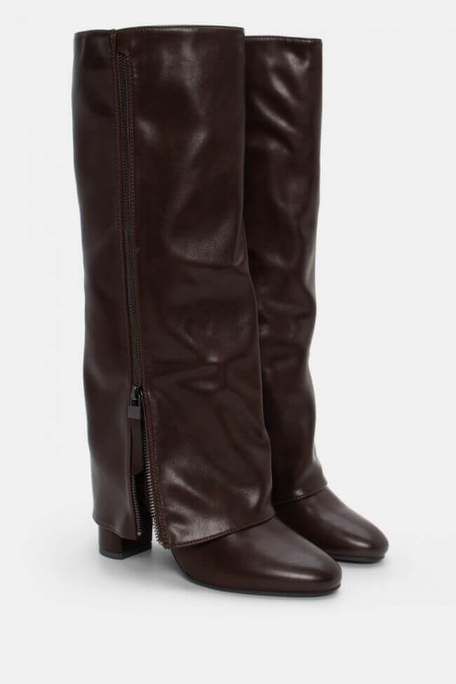 Μπότες με Εφέ Αναδιπλούμενης Φάσας & Διακοσμητικό Φερμουάρ
