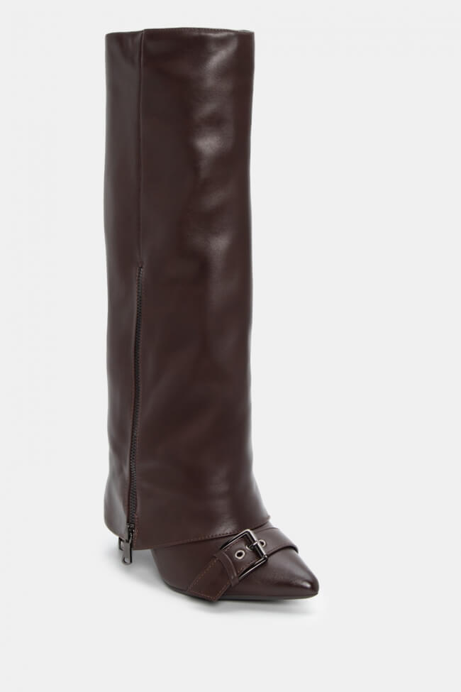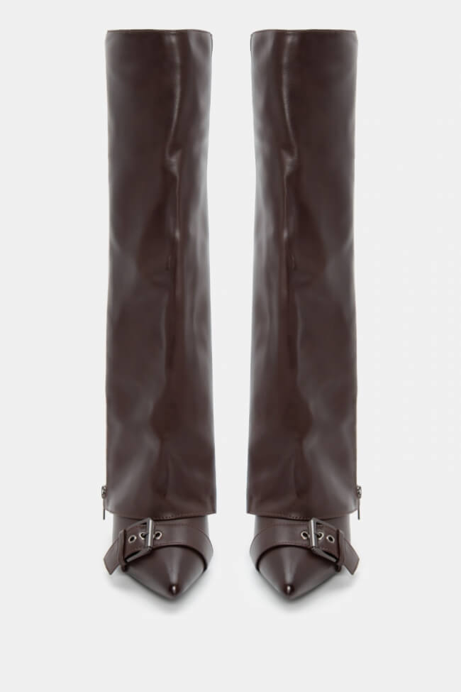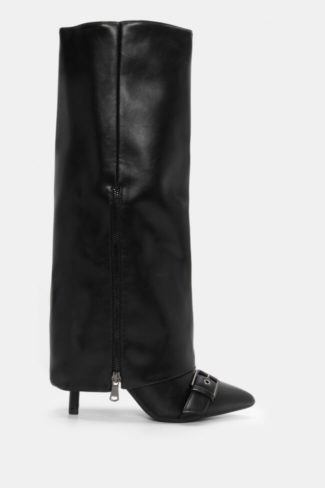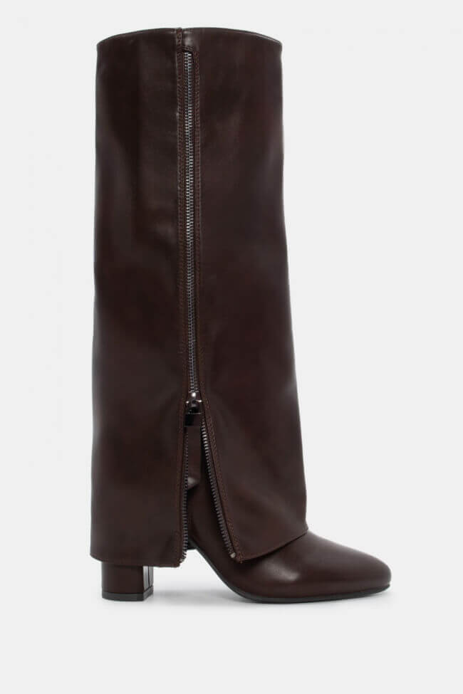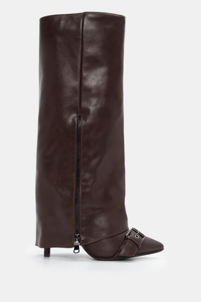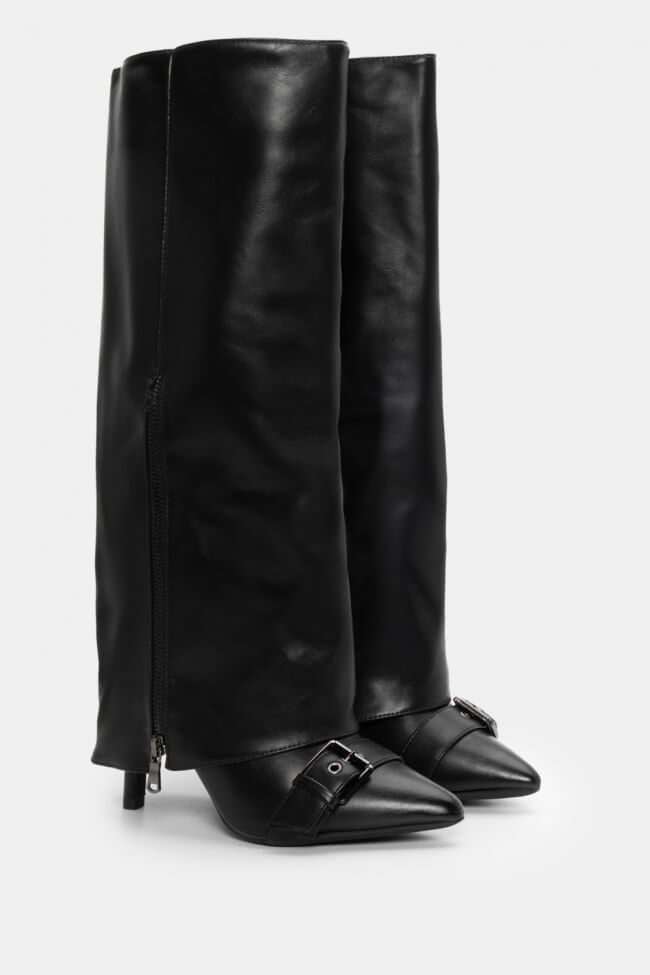 Μπότες με Εφέ Αναδιπλούμενης Φάσας & Διακοσμητικό Φερμουάρ