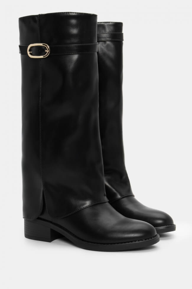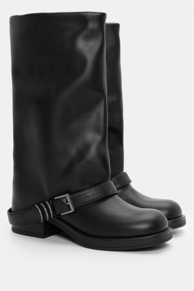 Μπότες με Εφέ Αναδιπλούμενης Φάσας & Διακοσμητικό Ζωνάκι