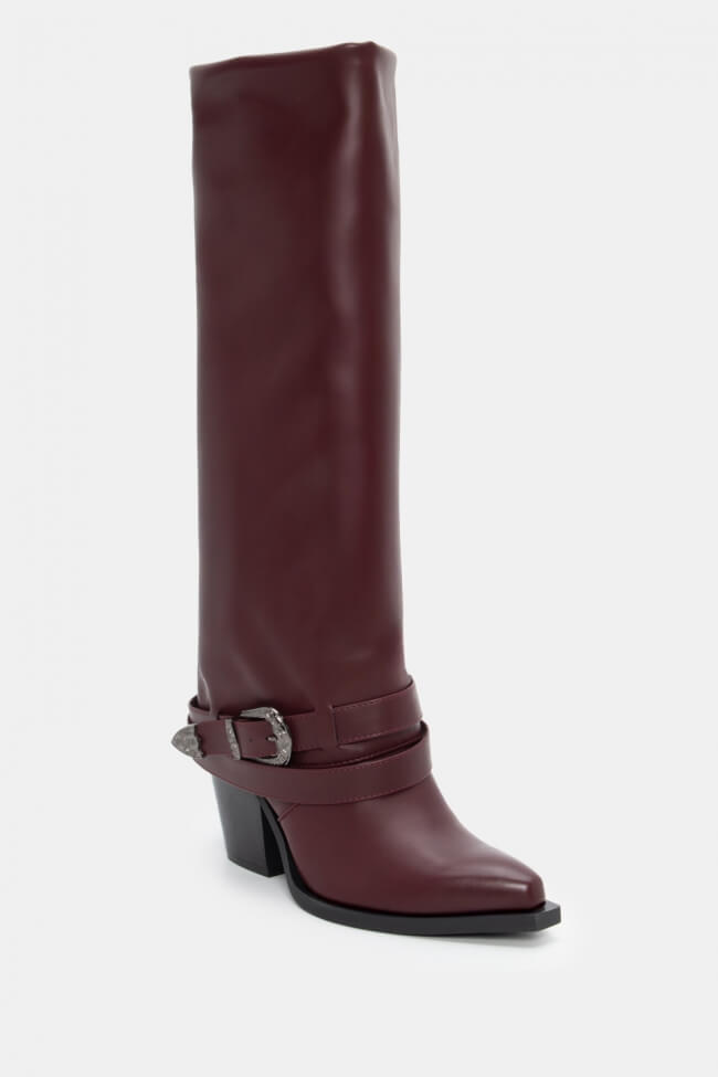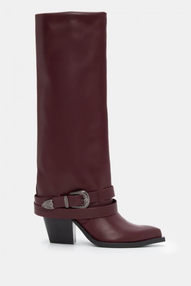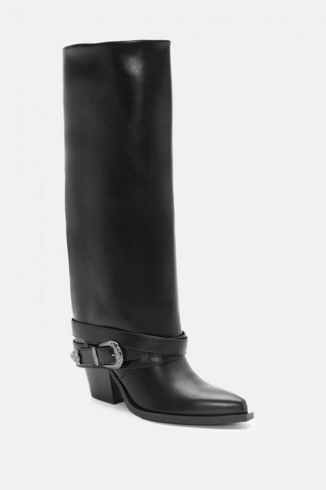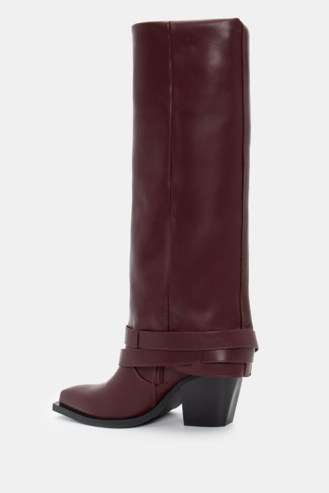 Μπότες Cowboy με Εφέ Αναδιπλούμενης με Διπλά Λουράκια