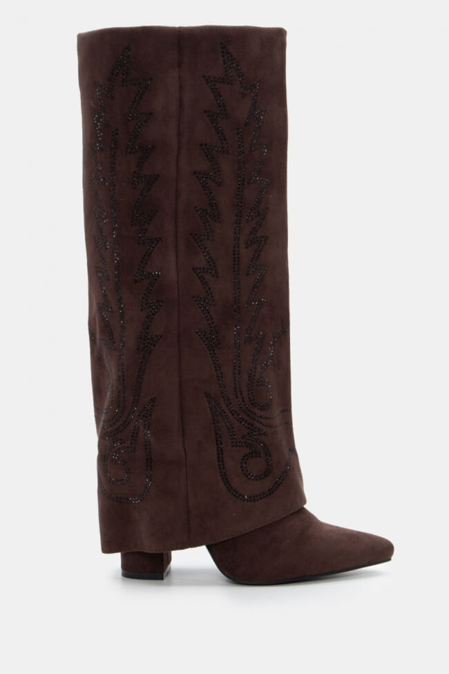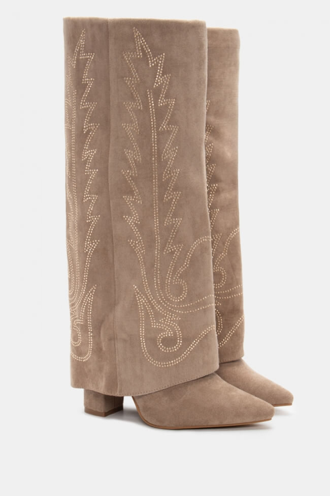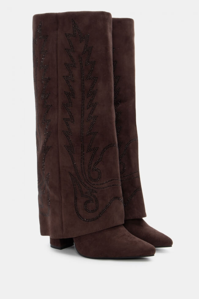 Boots with Folded Cuff Effect & Decorative Flames From Strass
