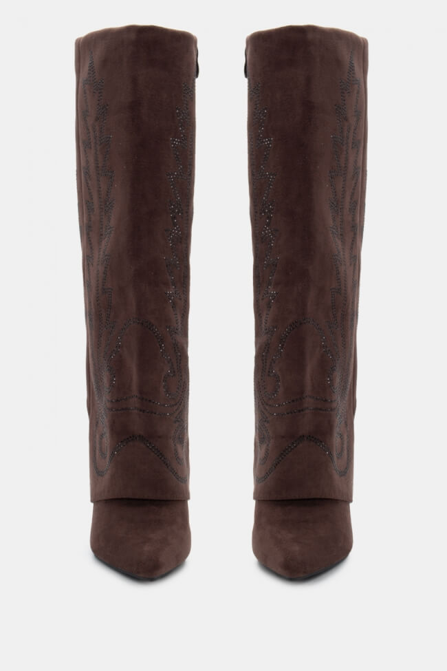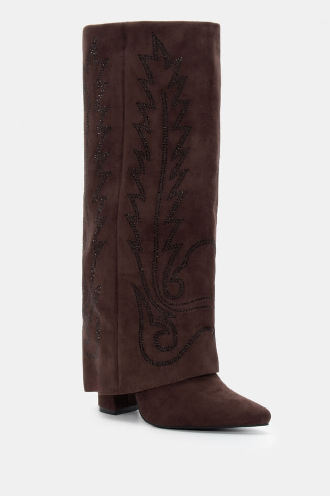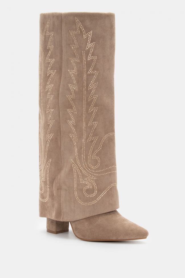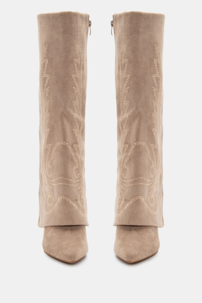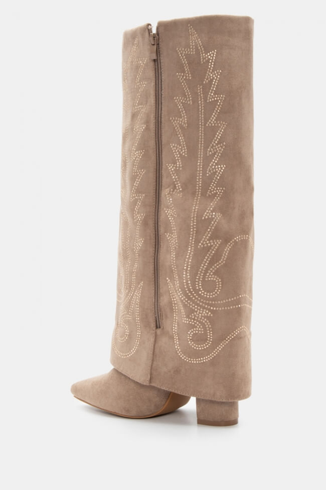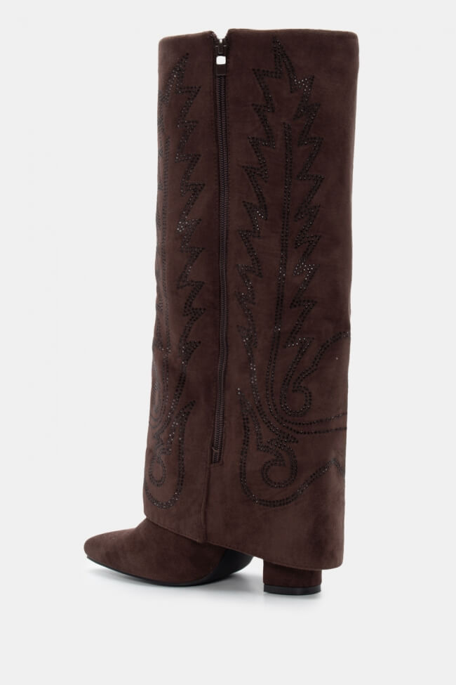 Cowboy Boots with Foldable Trim Effect & Embroidery