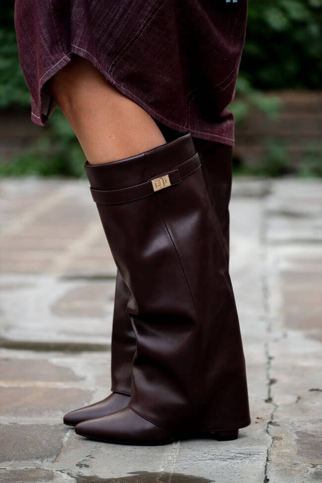 Pointed Boots with Fold-Over Flap Effect