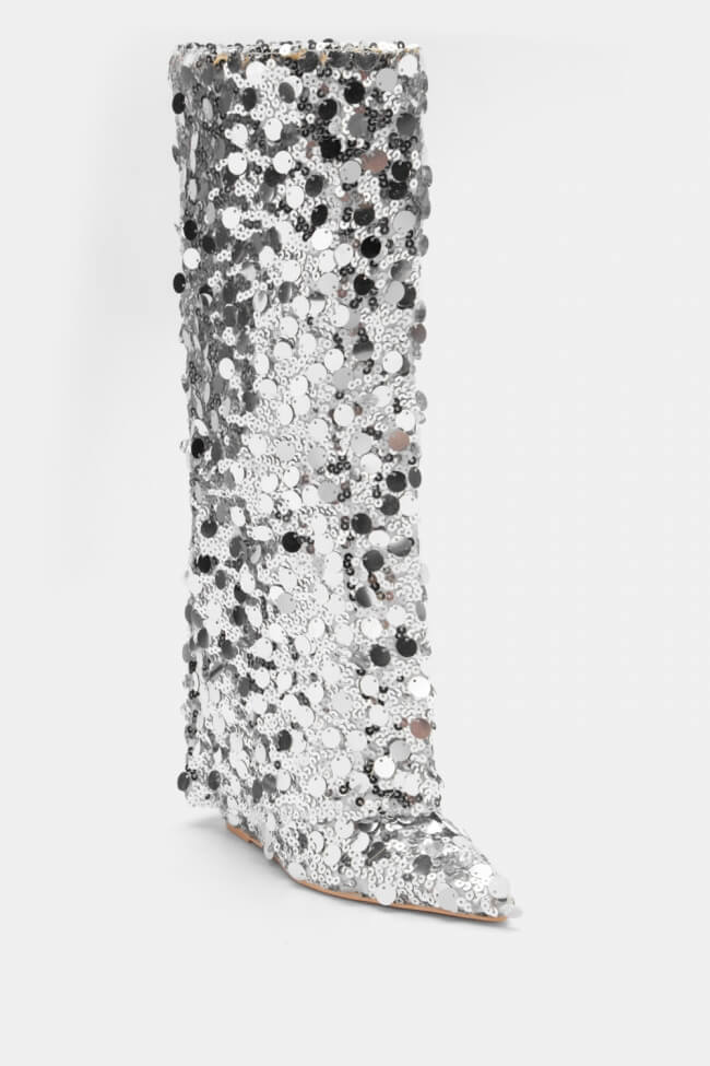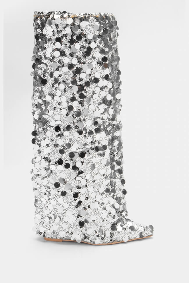 Boots with Fold-over Cuff Effect & Sequins