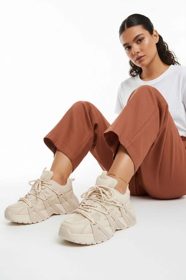 Sneakers Chunky în combinație de culori și materiale