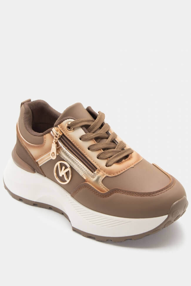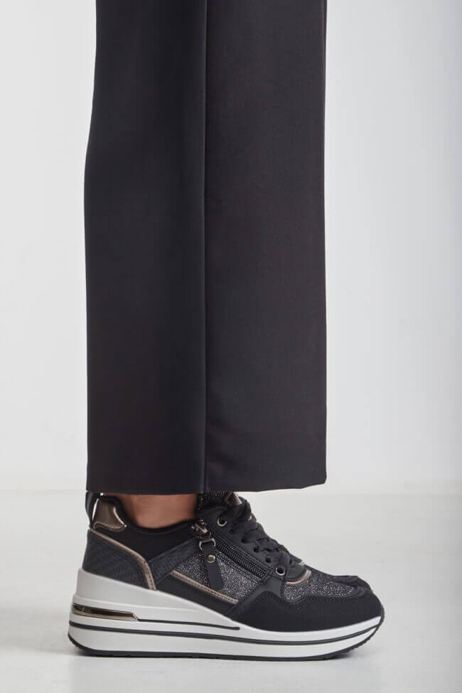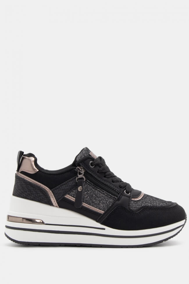 Sneakers cu talpă dublă cu strasuri și fermoar