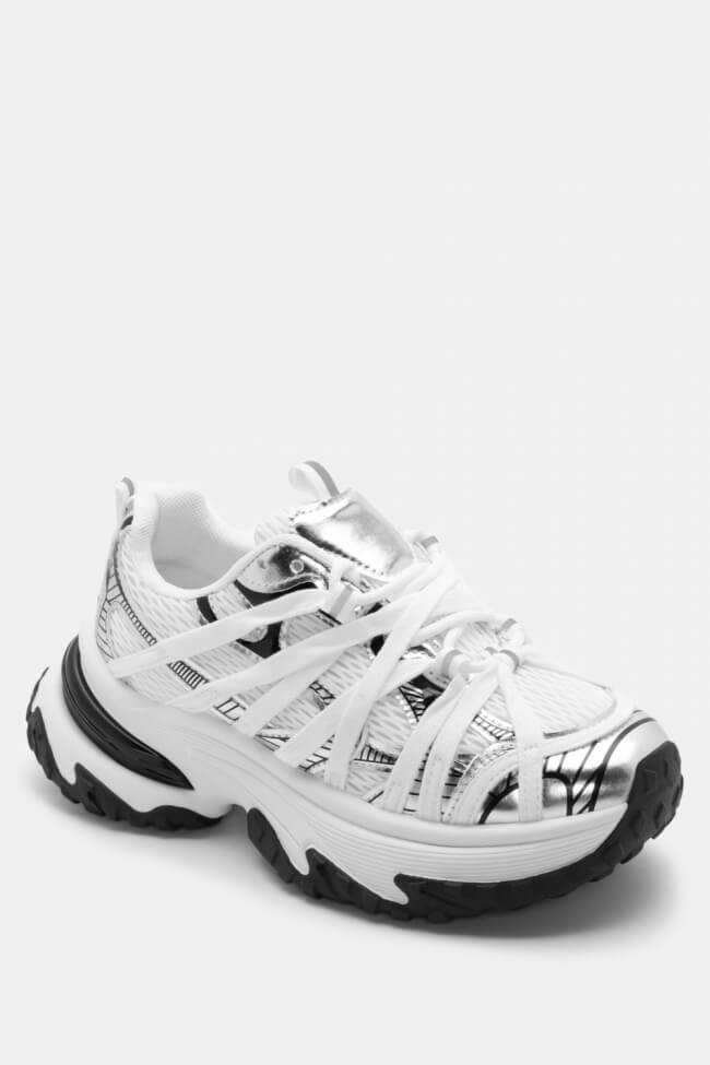 Sneakers cu talpă dublă și șireturi duble